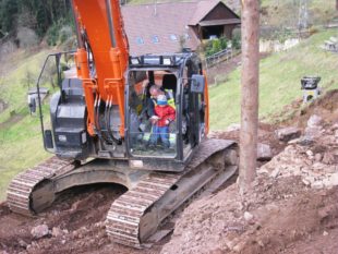 Die Schulfüchse des Kinderhauses „Sonnenblume“ besuchen das Bauunternehmen Lehmann in Oberharmersbach.