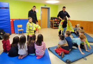 Die Schulfüchse vom Kinderhaus Sonnenblume bekamen Besuch von der Polizei.