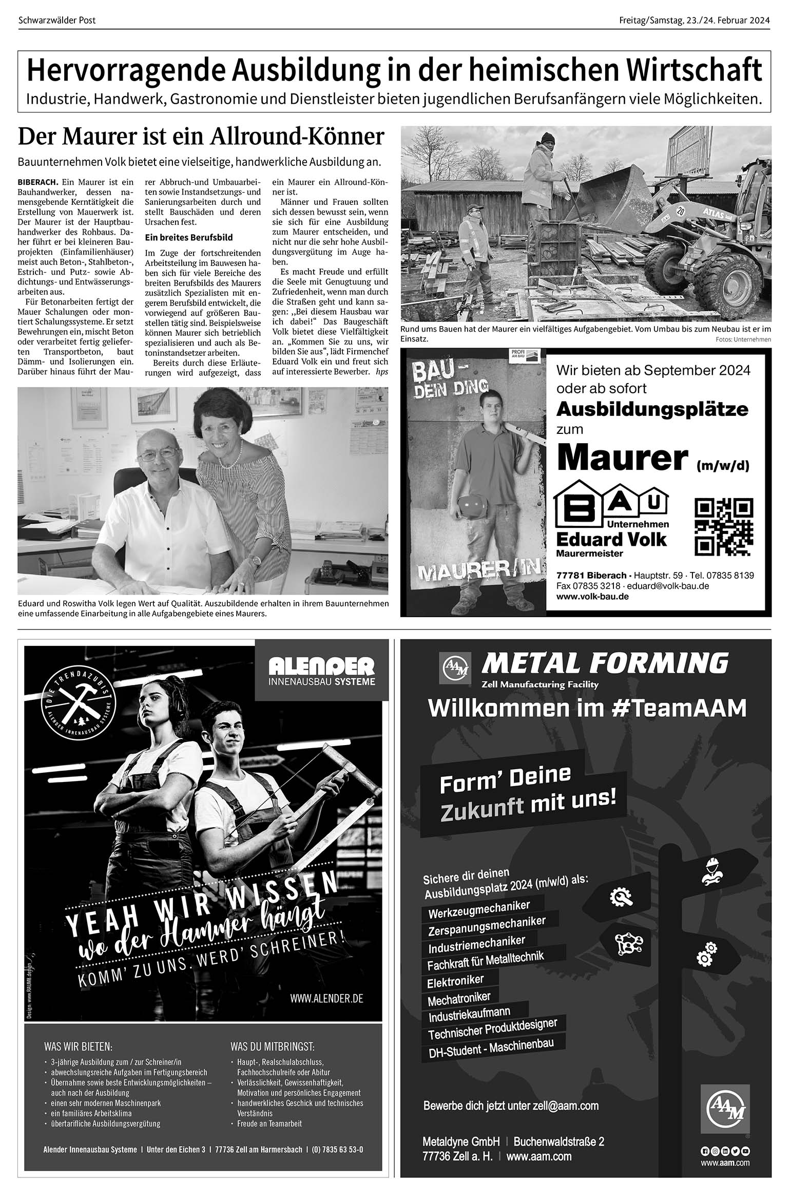Veranstaltungskalender für Zell a. H., Biberach, Nordrach und Oberharmersbach
