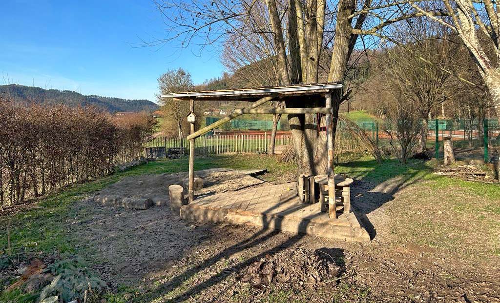 Schülerinnen und Schüler, Lehrkräfte, Gemeinderäte und Förderpartner stellen gemeinsam den neuen