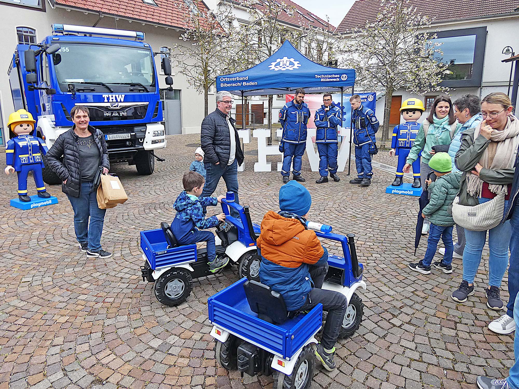 Bescherung kurz vor Weihnachten: Für Matilda, Antonia, Anton und Marie (vorne von links) gingen beim Weihnachtsmarkt persönliche Wünsche in Erfüllung. Sandra Armbruster und Jürgen Schmider übergaben die Geschenke.