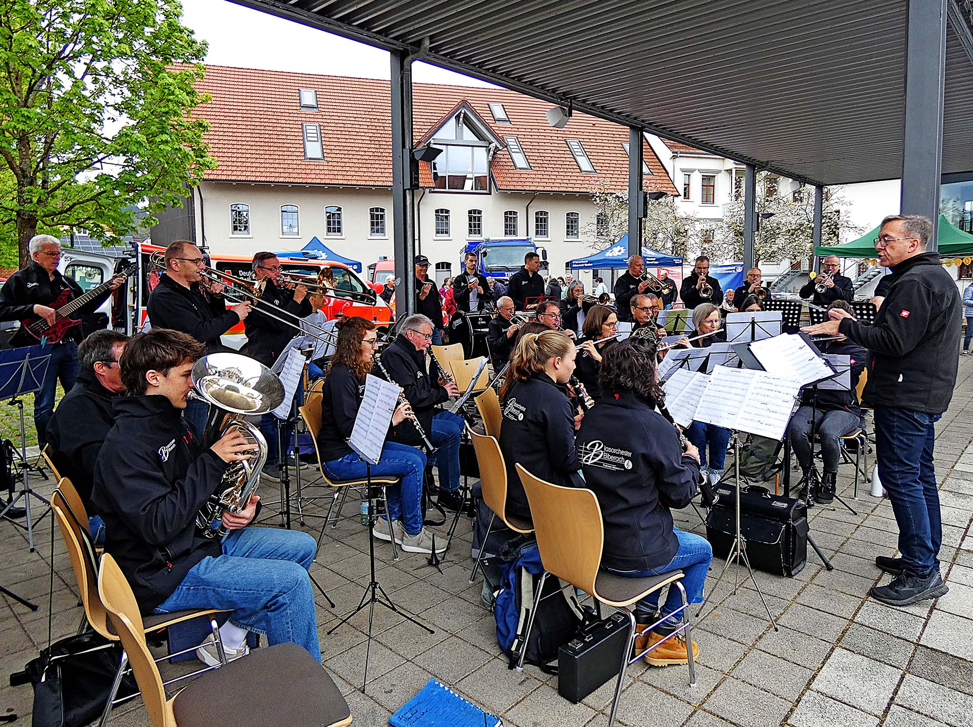 Das Blasorchester Biberach folgt Dirigent Axel Berger durch das Programm, das zehn Jahre gemeinsamer Arbeit dokumentiert.
