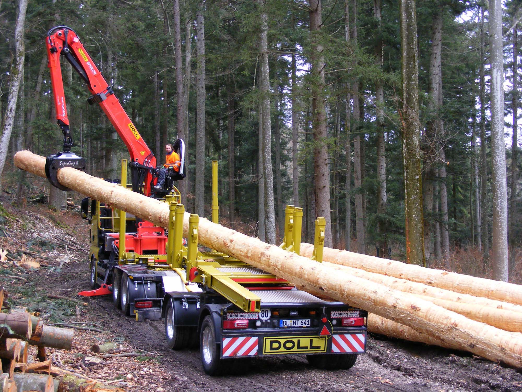 Im Privatwald kommt entrindete Weißtanne bei einer Stammlänge von 21 Meter zur Verladung.