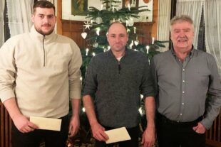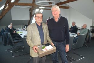 Siegfried Scheffold (rechts) trat die Nachfolge von Otmar Ritter (links) als Organisator an, dankte ihm und übereichte eine verdiente Anerkennung.