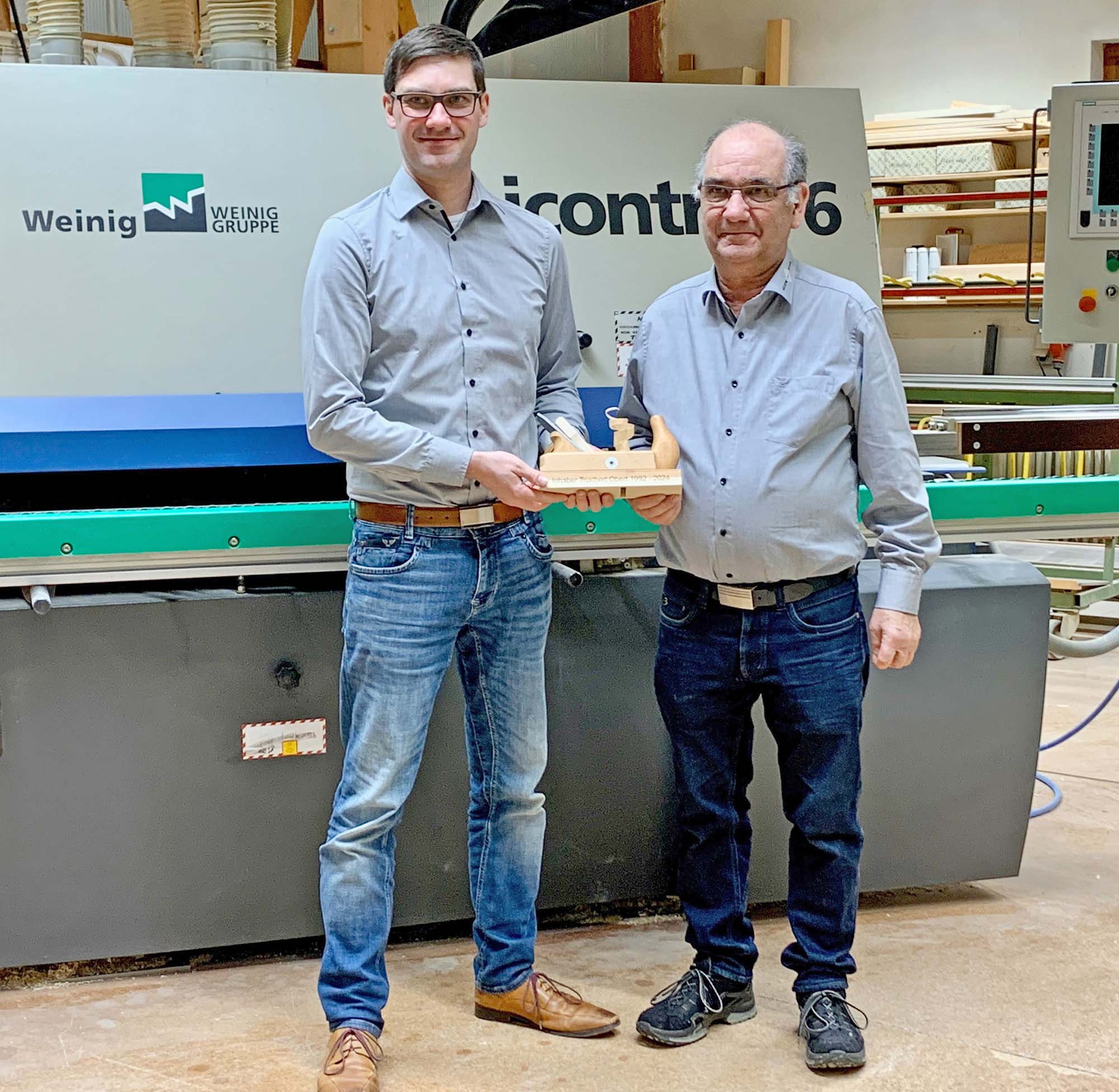 Betriebsübergabe bei der Schreinerei Obert: Matthias Obert (links) übernimmt den Betrieb von seinem Vater Trudbert (rechts).