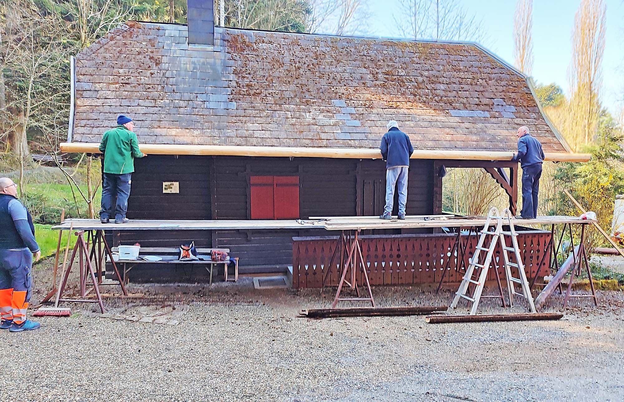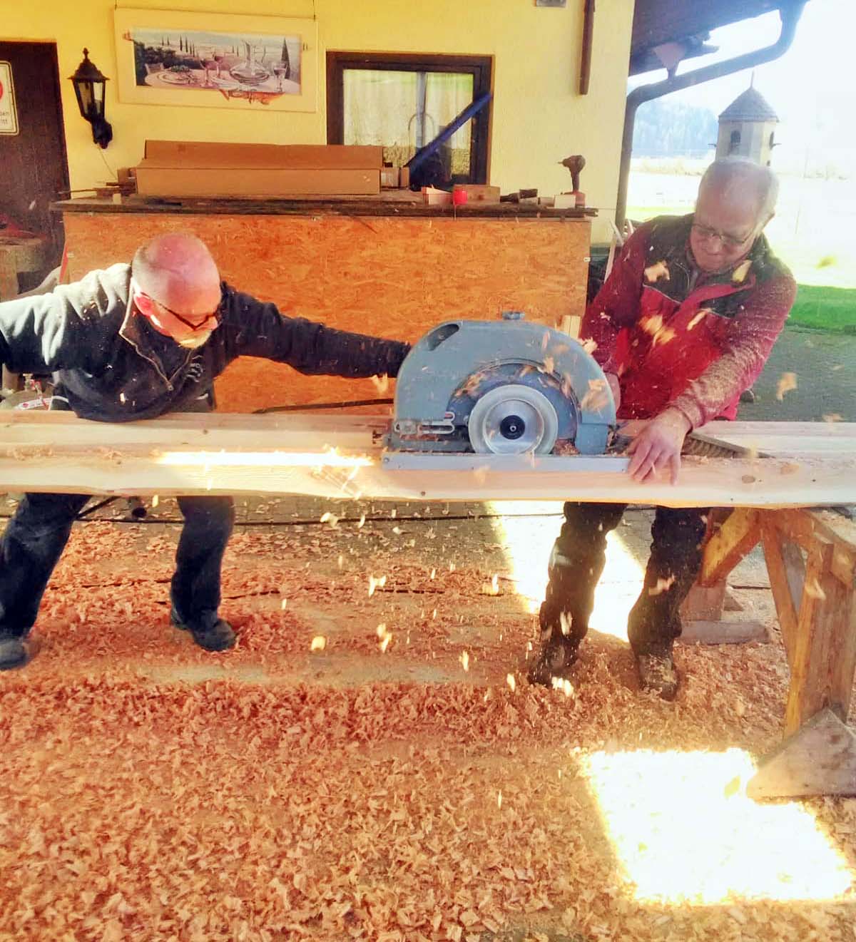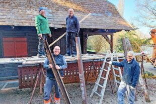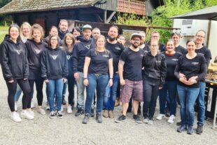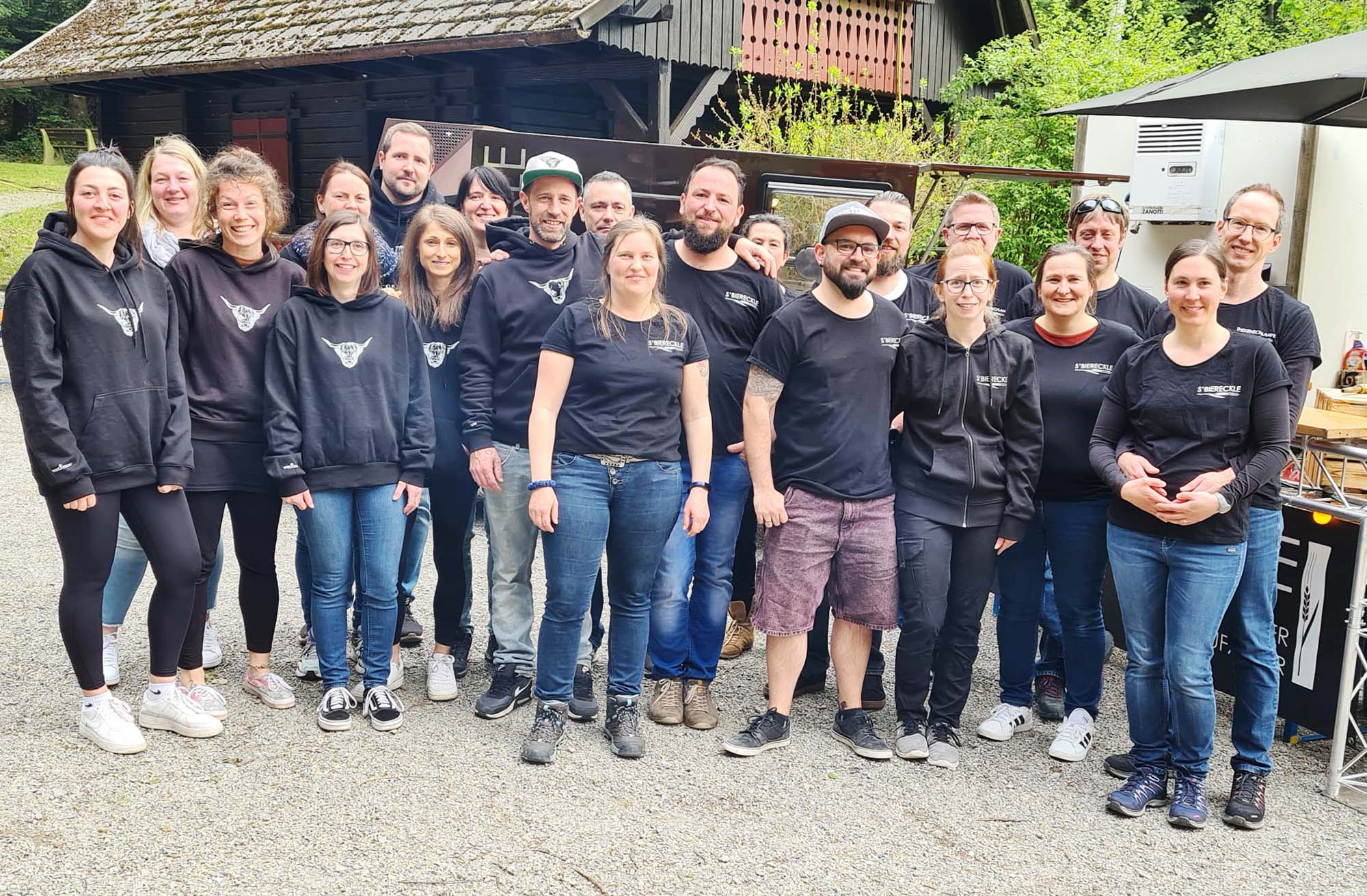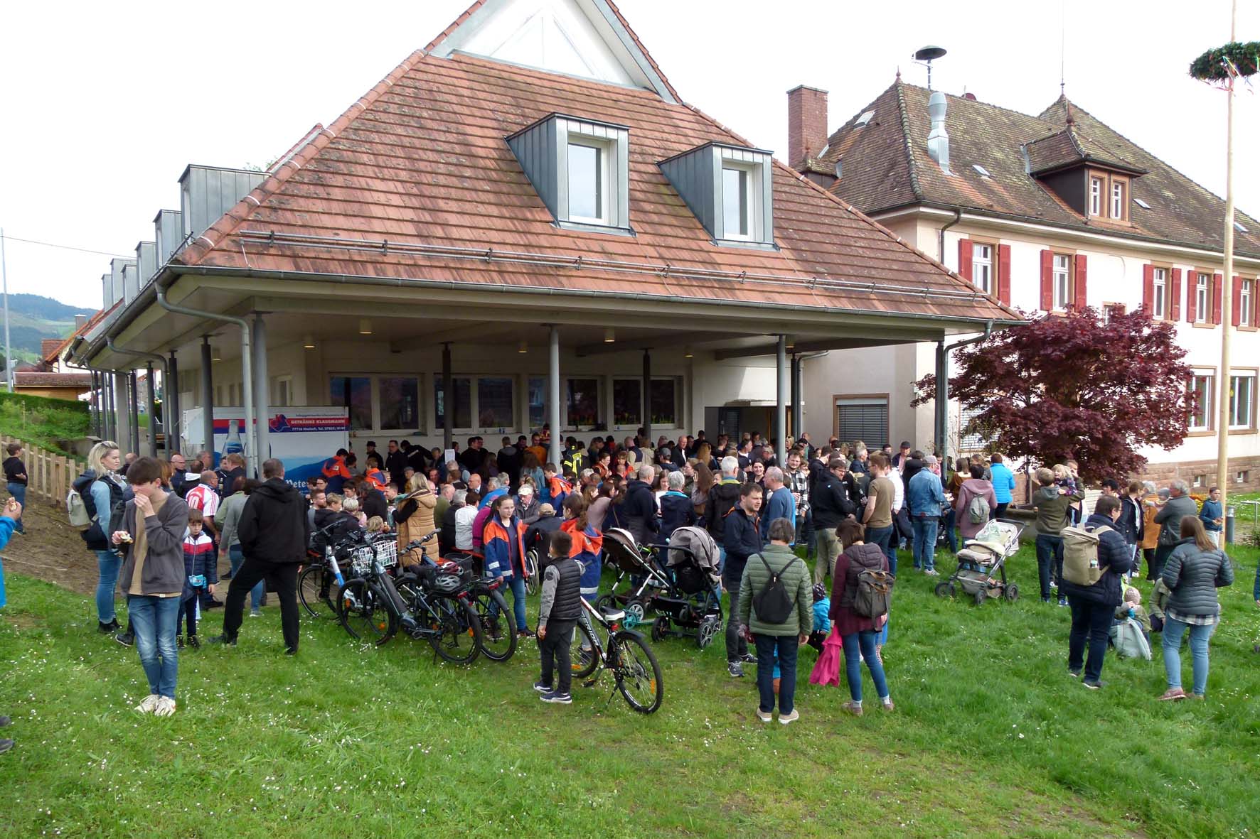 Das traditionelle Gruppenfoto der diesjährigen „Kläuse“, gemeinsam mit Ortsvorsteher Christian Dumin (5. von rechts) sowie dessen Vorgängerkollegen Horst Feuer und Petra Kühn (2. und 3. von rechts). In der ersten Reihe (5. Von rechts): Gründungsmitglied Klaus Herm und Organisator Claus Jilg (2. von links).