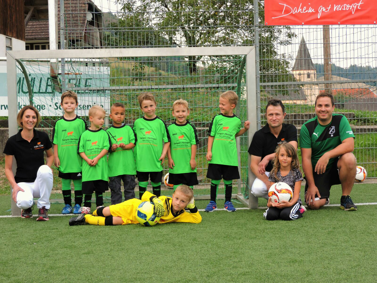 Große Freude für die Bambini der DJK Prinzbach und ihren Trainer Stefan Oschwald: Die Metzgerei Thomas Geiger hat dem Nachwuchs neue Trikots gesponsert.
