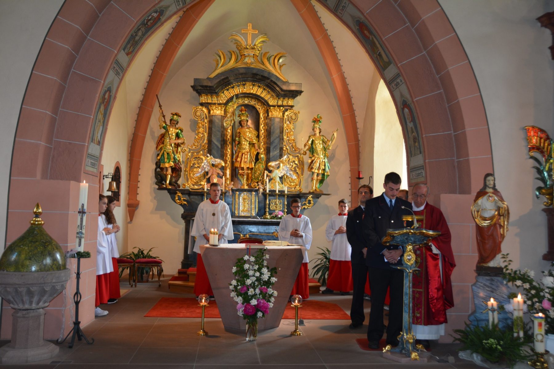 Die Fürbitten des Pfingstsonntags wurden von den Prinzbacher Feuerwehrmännern Pirmin Huber und Frank Becherer gelesen. Die Bitten galten unter anderem für Menschen, die in Not und Bedrängnis sind, für die Einheit der Gläubigen und auch für die verstorbenen Kameraden der Feuerwehr. Die Lesung aus dem Brief des Apostel Paulus an die Korinther hatte Lydia Lehmann von der Biberacher Jugendfeuerwehr vorgetragen.