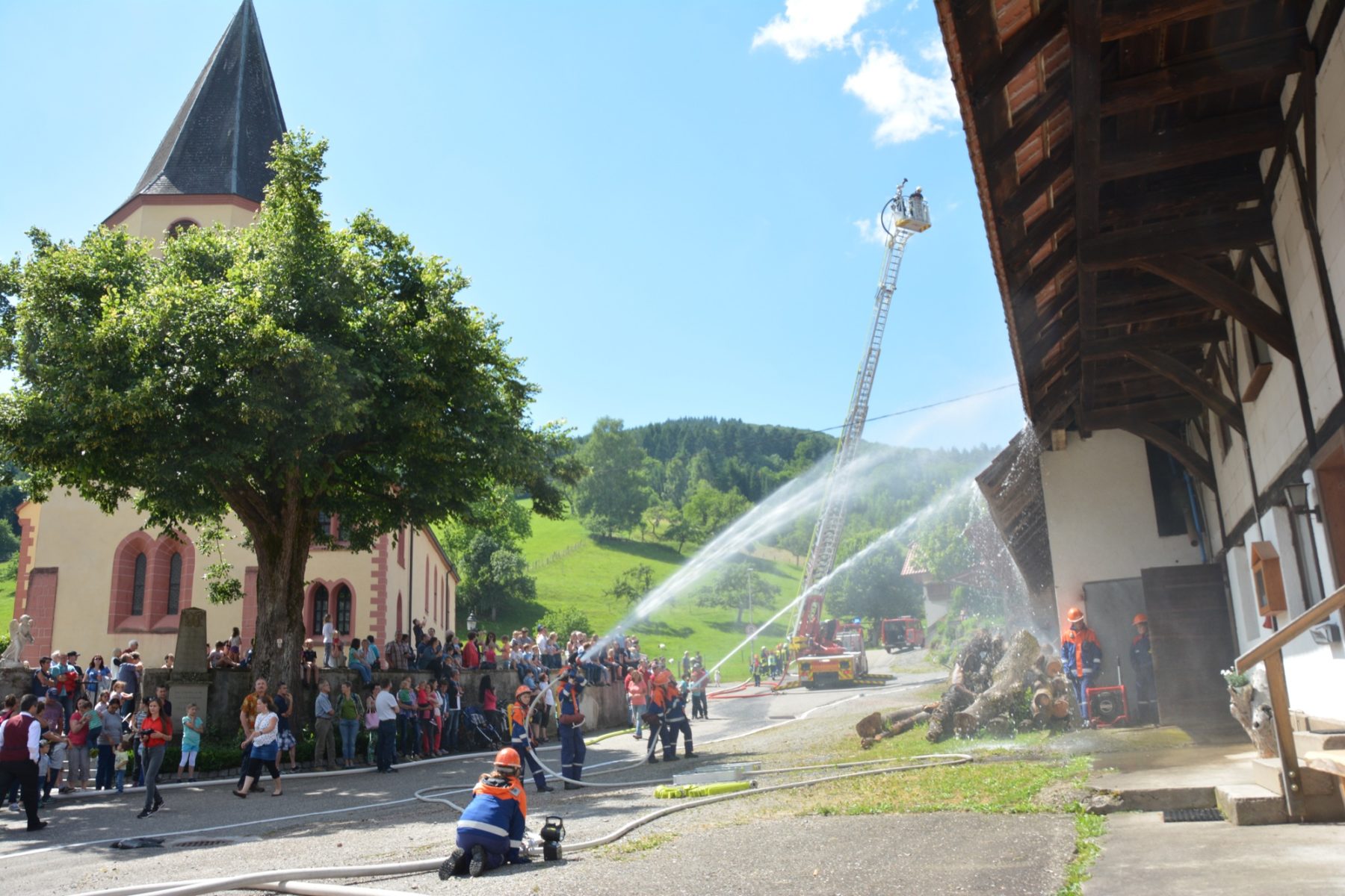 Der Pfingstsonntag stand in Prinzbach ganz im Zeichen des Feuerwehrjubiläums. Viele Prinzbacher und Biberacher, aber auch viele Feuerwehrkameraden aus den Nachbarorten und zahlreiche Besucher kamen zur Geburtstagsfeier der Prinzbacher Abteilungswehr und der Biberacher Jugendfeuerwehr. Höhepunkte des Tages waren der Festgottesdienst am Sonntagmorgen und nachmittags die große Schauübung des Feuerwehrnachwuchses.