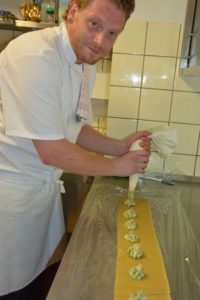 Foto: Hanspeter Schwendemann»Wir zeigen dem Gast, was man mit Käse alles auf den Tisch zaubern kann«, betonte Gastronom Karl-Heinz Bühler und lud die Teilnehmer gemeinsam mit seiner Frau Tina und Tochter Anja zum Abschluss der Präsentation zu einer Verkostung ein. Auf der Speisekarte standen ein Käse-Süppchen, überbackener Ziegenkäse und Ravioli mit Kräuterkäsefüllung.