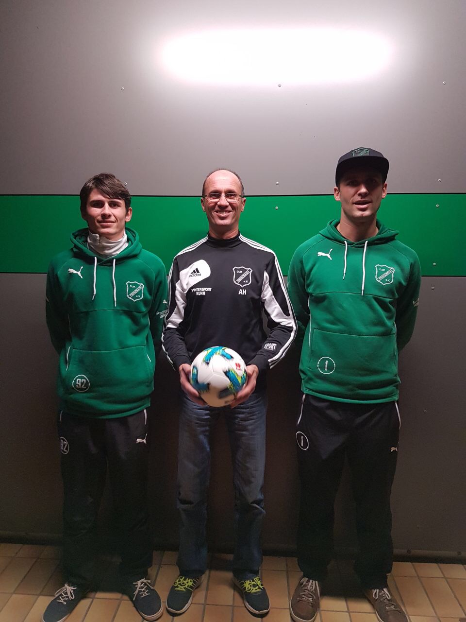 Zum Nachholspiel der DJK Prinzbach gegen den FV Kuhbach/Reichenbach gab es eine weitere Ballspende für die DJK Prinzbach. Die langjährigen DJK-Aktiven in den 90er Jahren Edwin Haag, Michael Kuhn und Paul Himmelsbach haben den Spielball für das Derby gespendet. Edwin Haag überreichte den Spielball an seine beiden Söhne Daniel Haag, der als Torjäger für Tore sorgt und Tobias Haag, der als Torwart das gleiche verhindern soll. Diese beiden konnten nur wenige Minuten später als Spieler der I. Mannschaft die Lederkugel testen. Das DJK Team bedankt sich in diesem Jahr besonders bei Heimspielen mit Ballspenden bei den großzügigen Sponsoren, und mit dem Punktgewinn beim 3:3 gegen den Lokalrivalen FV Kuhbach/Reichenbach hat der neue Ball auch gleich dazu beigetragen das Punktekonto der DJK aufzubessern. Bei der Ballübergabe (von links): Tobias Haag, Edwin Haag und Daniel Haag.