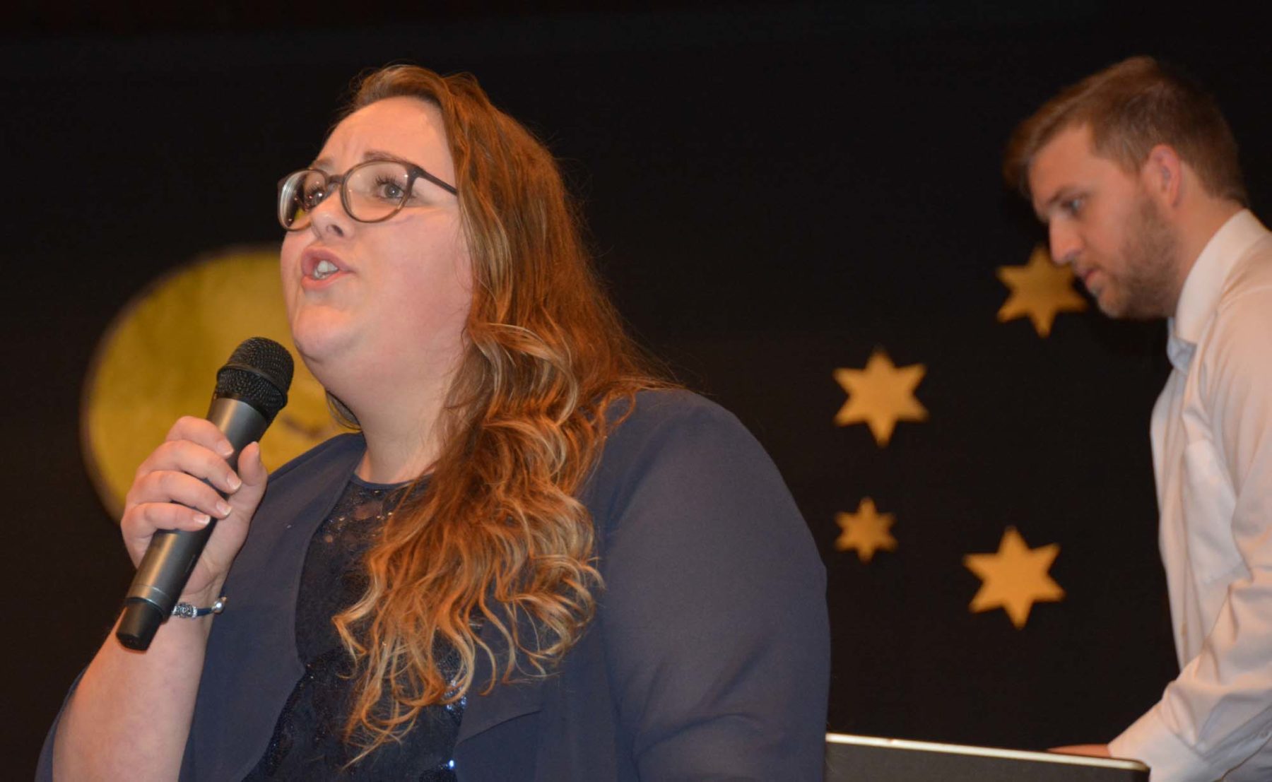 Rot ist zum Einen die Farbe der Liebe und der Leidenschaft, wird zum Anderen aber auch mit Blut und Tod assoziiert. »Rood«, ein Song des Niederländers Marco Borsato, thematisiert diesen Zwiespalt treffend. Auch in der Musik spiegelt er sich wider im Kontrast zwischen den fließenden, filigranen Klängen der Holzbläser und der facettenreichen Percussion, verstärkt durch prägnantes Händeklatschen. Ein grandioser Vortrag, an den sich der Evergreen »Music« nahtlos anschloss. Den konnte man auch als Hommage an den »Diri« Stefan Griesbaum verstehen, der sich seit 10 Jahren im Musikverein engagiert und dem die Zeilen »Musik war meine erste Liebe …« quasi auf den Leib geschrieben sind. Moderator Josef Schöner hatte sich extra ein neongrünes Glitterjacket übergezogen, das an die schrillen Outfits eines Thomas Gottschalk erinnerte. Das raffinierte Bläserarrangement machte aus John Miles‘ Radio-Pop-Hit im forschen Zugriff des Ensembles ein faszinierendes Klangerlebnis. Während Klaus Becks Tenorhorn die Gesangsmelodie nachzeichnete, sorgte Alexander Ulrich am Keyboard für perlende Zwischentöne.