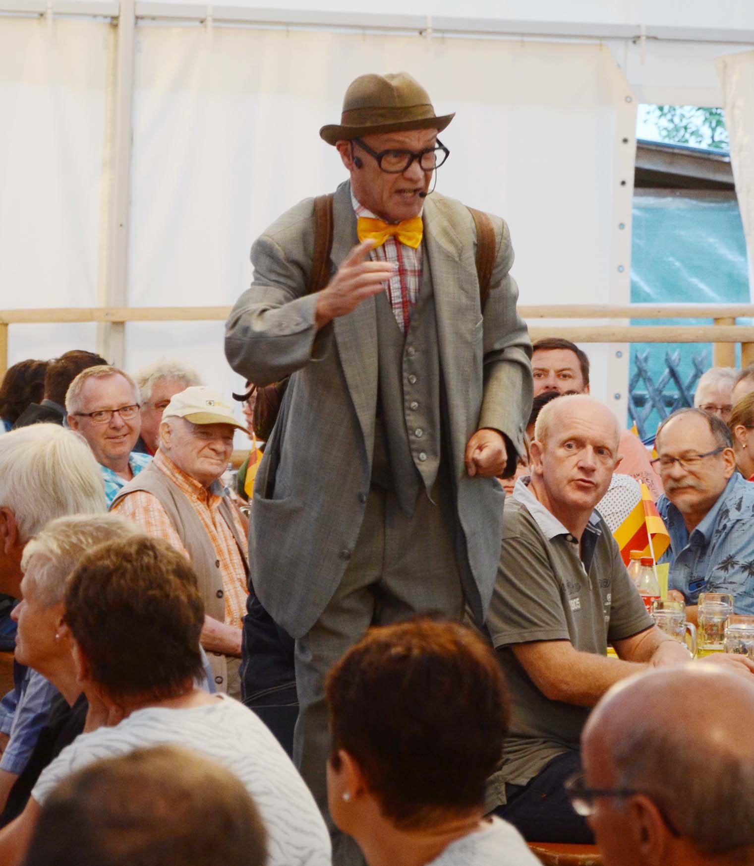 Für die anschließende Unterhaltung waren die »Egerländer…im Ernst Moschen wir weiter« mit »Special Guest« Opa Karl zuständig. Mit Polkas und Märschen sorgte die Musikgruppe für reichlich Tanzstimmung. Der Komiker Opa Karl erfreute die Gäste mit kleinen »Gags« über das Dorfgeschehen und Prinzbach und brachte das gesamte Zelt zum Lachen. Bei guter Musik und reichlich Bier klang ein erfolgreiches Festwochenende aus.