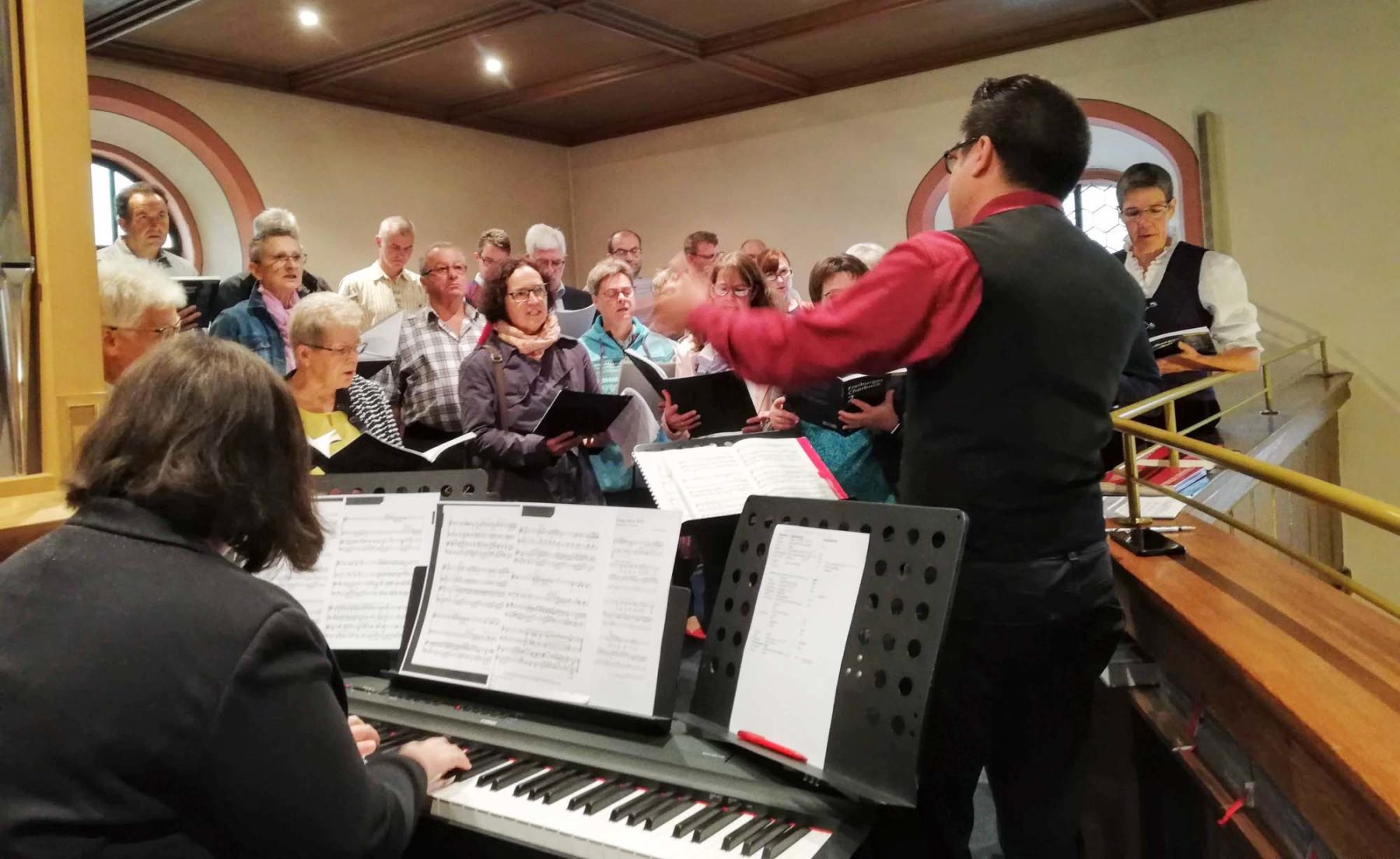 Foto: Nicole FonteinerIn diesem Jahr fiel der Gedenktag des Heiligen Mauritius, der 22. September, direkt auf einen Sonntag. In einem von Pfarrer Seibt zelebrierten und vom Kath. Kirchenchor Prinzbach feierlich umrahmten Festgottesdienst wurde dem Wirken des Märtyrers Mauritius gedacht. Dem Kirchenchor Prinzbach unter der Leitung von Adrian Sieferle haben sich in diesem Jahr Projektsängerinnen und -sänger angeschlossen, die eine große Stütze für den ansonsten relativ kleinen Chor waren. Adrian Sieferle hat ein besonderes Programm zusammengestellt. Mit Werken wie »Alle Dinge dieser Welt«, »Singet dem Herrn und preiset seinen Namen«, »Ubi caritas«, »Magnificat« oder auch dem Segenslied »Irish blessing« wurden sehr gefühlvolle Werke präsentiert.