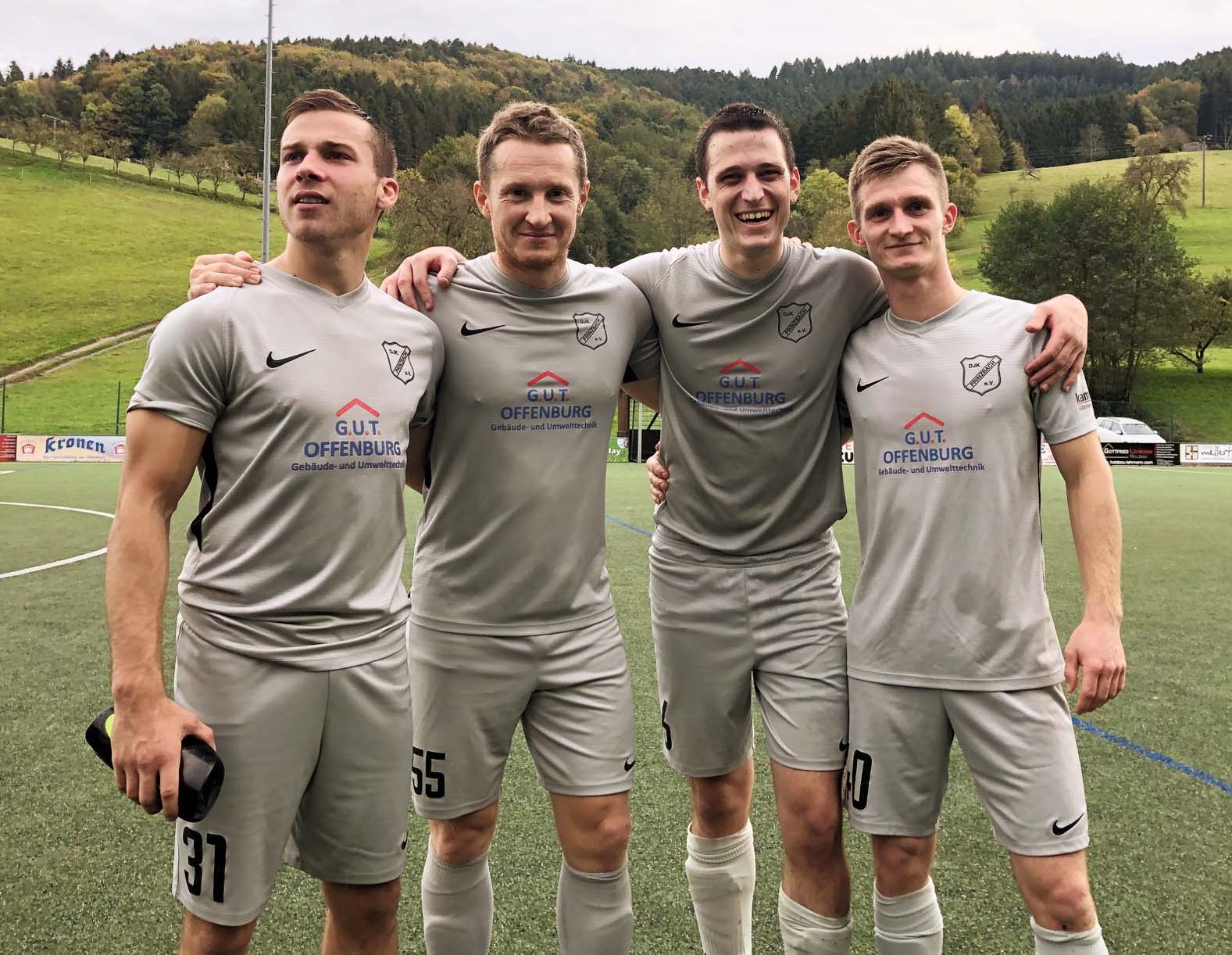 Strahlende Gesichter – die Prinzbacher Torschützen: Julian Krumm (4 Treffer!), Eduard Jung, Timo Echle und Adrian Plucienik. Foto: Helmut Christ