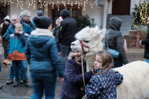 Von Regen, Sturm und trübem Wetter ließen sich die Besucher nicht abhalten, was die Veranstalter, Familie Reinhard sehr freute. Tiere streicheln, Ponyreiten und die Wanderungen mit den Alpakas kam an beiden Tagen besonders bei den kleinen Gästen gut an. Aber auch die Erwachsenen staunten nicht schlecht über die tierische Vielfalt auf dem Hof, zu der außer 19 Alpakas und zwei Lamas auch sechs Ziegen, ein paar Kaninchen und Meerschweinchen, zwölf Ponys und Pferde und zwei Hunde gehören. Schutz vor Regen fand man in einem Anbau, der zu einem gemütlichen Adventscafé umgebaut worden war. Der Hof war festlich mit vielen Lichtern geschmückt. Überall fanden sich liebevolle Details, die den Besuch zu einem wahren Vergnügen machten.