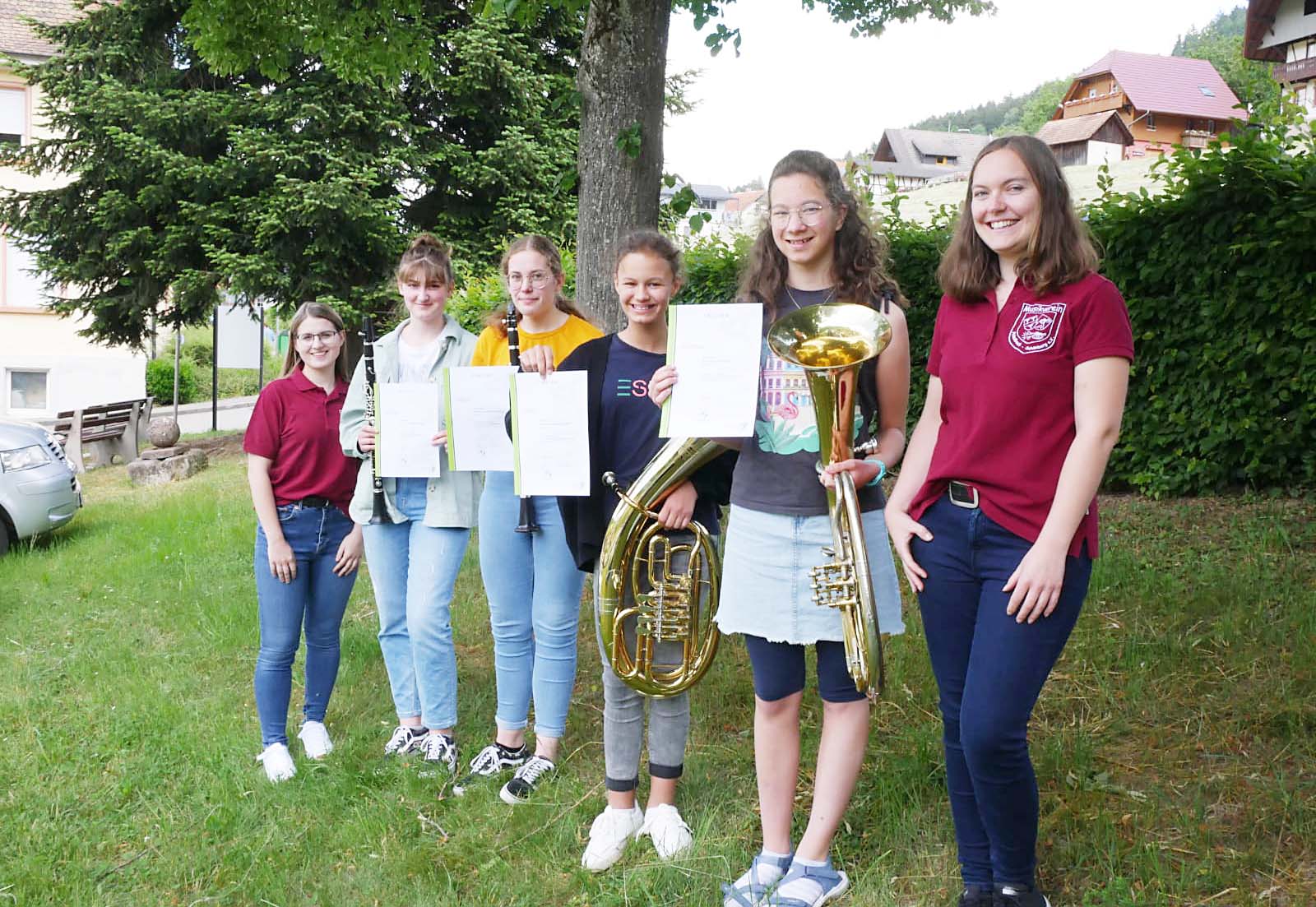 Das Silberne Leistungsabzeichen abgelegt haben Carina Rehm (Klarinette) und Selina Haas (Querflöte). Das Leistungsabzeichen in Bronze erhielten Silja Wussler (Klarinette), Paula Schmieder (Tenorhorn) und Alicia Roser (Tenorhorn).