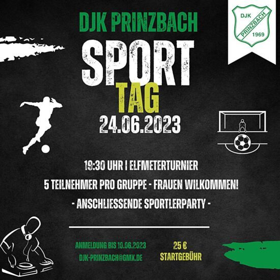 Das Wichtigste in Kürze: Die Vorrunde der Dorfmeisterschaft findet wieder mit Völkerball als zweiter Sportart statt. Neu ist das die Dorfmeisterschaft nur am Samstag stattfindet, das Finale wird vor dem Elfmeterschießen ausgetragen. Am Sonntag finden keine Spiele der Dorfmeisterschaft statt, am Sonntag ist Jugendschnuppertag. Die Turnierbestimmungen findet man auf der Homepage unter: www.djk-prinzbach.de.