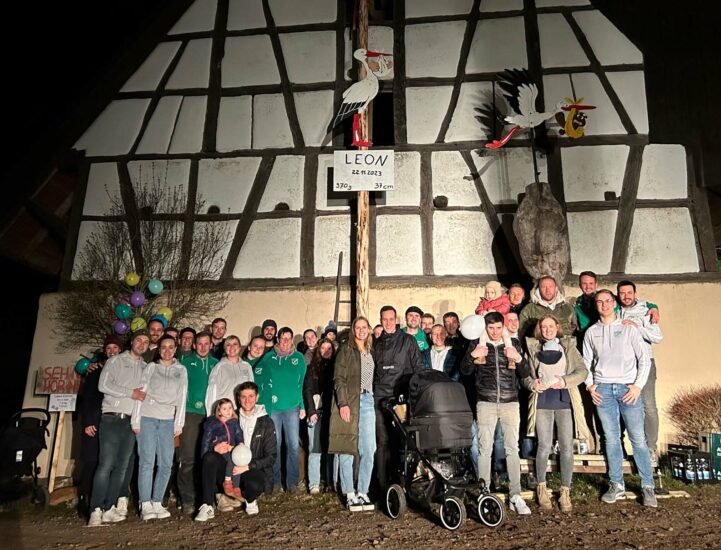 Somit war auf dem Schönberg gut was los und zahlreiche Maibäume, Störche und Wäscheleinen schmücken nun das Anwesen der glücklichen Eltern und Großeltern.