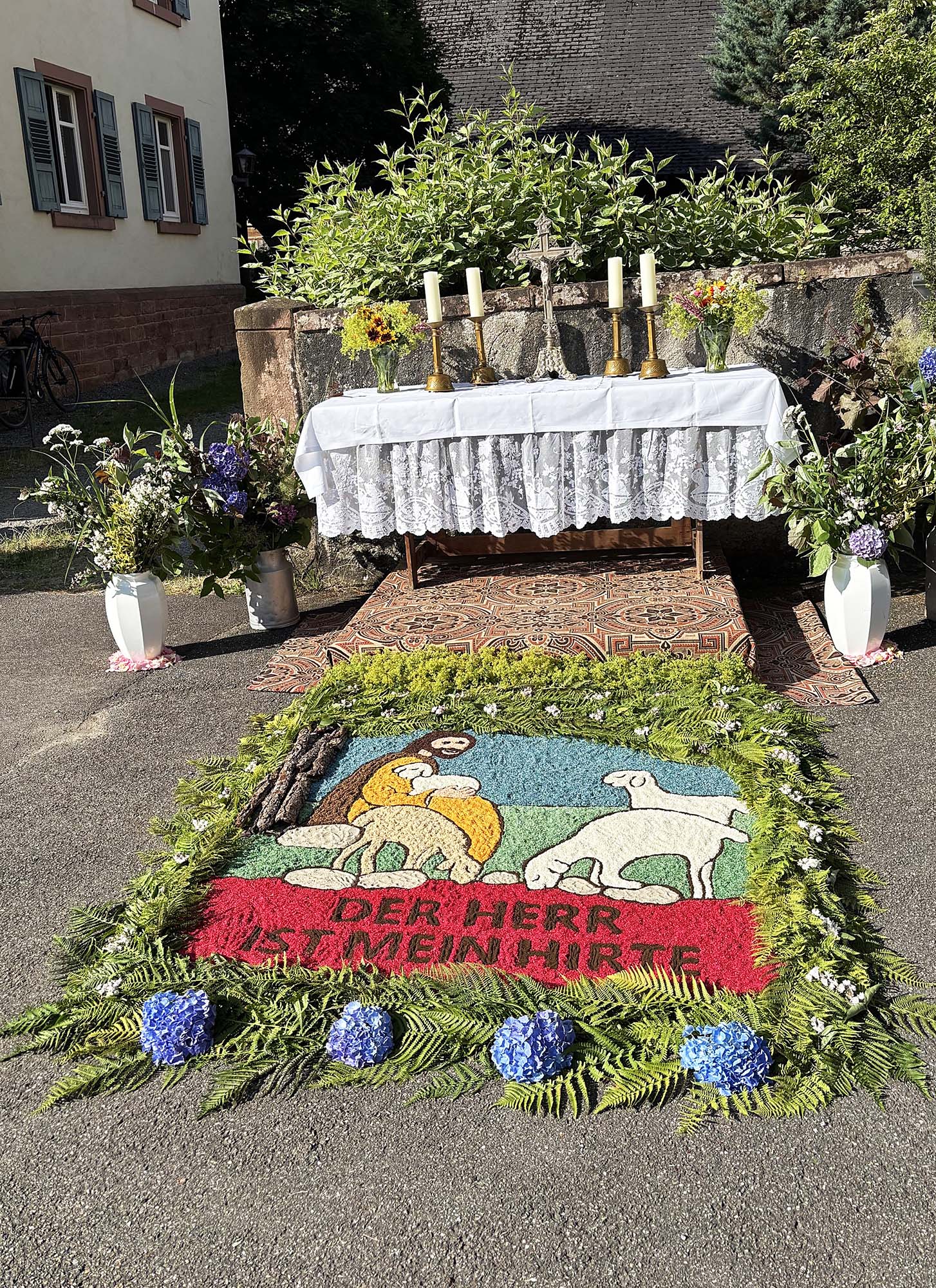 Vor der Kirche hatte die DJK Prinzbach eine weitere Station errichtet. Auch hier wurde das Evangelium gelesen, es folgten Fürbitten und ein Segen. Zurück in der Kirche sang die Gemeinde gemeinsam mit dem Musikverein das Lied „Großer Gott, wir loben dich“. Nach dem „Tantum ergo“ und dem abschließenden sakramentalen Segen dankte Pater Irenäus allen Mitwirkenden – besonders den Musikern um Dirigent Stefan Griesbaum, dem Kirchenchor unter Leitung von Adrian Sieferle, dem Messnerteam, den Fahnen- und Himmelträgern sowie den vielen Ministranten, die zum Gelingen der Feier beigetragen hatten. Mit dem Marienlied „Gegrüßet seist du, Königin“ endete der Gottesdienst.
