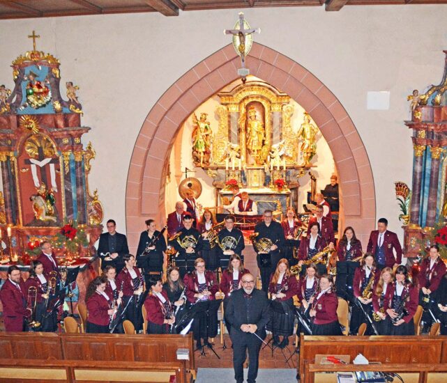 Die einzigartige Atmosphäre der Prinzbacher Kirche und die wiederum gelungene Stückauswahl von Dirigent Stefan Griesbaum ergänzten sich zu einem erhebenden Konzerterlebnis. Beeindruckend war auch die große Zahl der Musikerinnen und Musiker, die nicht nur den Altraum, sondern den gesamten vorderen Bereich der Kirche füllten. Lena Schmieder und Alicia Roser hatten dabei ihr erstes Konzert.
