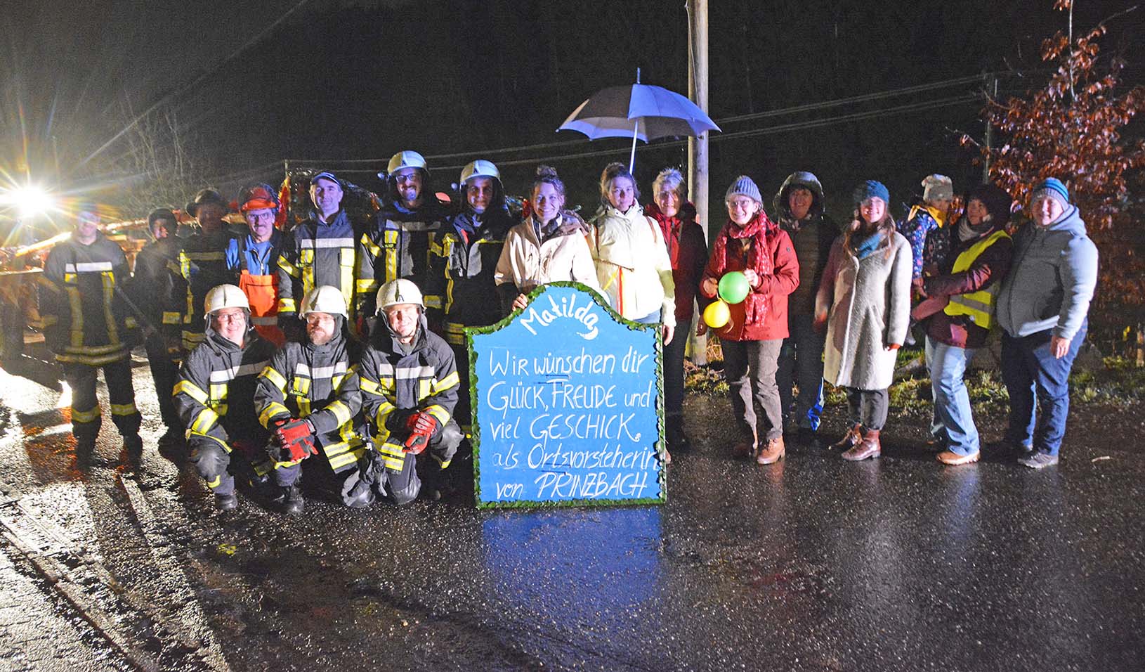 Das Schmücken des Maibaums haben die Landfrauen Prinzbach um ihre Vorstandssprecherin Rita Vitt übernommen. Das Buntpapier ist selbstredend in den Prinzbach Wappenfarben rot und gelb. Daneben sorgen Luftballons für bunte Farbtupfer an den dunkelgrünen Tannenzweigen. Auch ein großes Schild darf nicht fehlen: „Matilda, wir wünschen dir Glück, Freude und viel Geschick als Ortsvorsteherin von Prinzbach.“