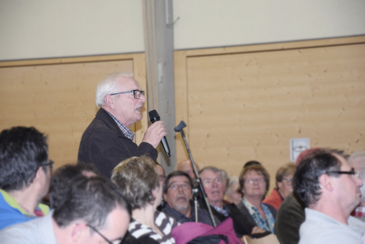 Anschließend sagte Klaus Vollmer, dass es nicht vorrangig um den Bebauungsplan gehe, der immer ein Für und Wider habe, sondern wie mit den Bürgern umgegangen werde. Viele wären aufgrund des Einladungsschreibens im Juni mit ganz anderen Erwartungen in die Halle gekommen und die Beitragsnachforderung habe sie getroffen wie ein Blitz aus heiterem Himmel. Immerhin geht es bei den vielen um einen Bescheid mit einem vierstelligen Betrag. Hendrik Hund bedauerte, dass »wir uns nun 40 Minuten nochmal anhören mussten, wie glücklich wir über diesen Bebauungsplan sein müssen«, und beklagte eine »verwaltungstechnische Präzession«, die sich nur noch im Zitieren von Paragrafen ergehe. Danach spielte er den Ball um den Dorffrieden zurück: »Was hat sich denn der Gemeinderat überlegt, was er für den Dorffrieden tun kann?« Und welche Zugeständnisse könne die Verwaltung den Bürgern machen?