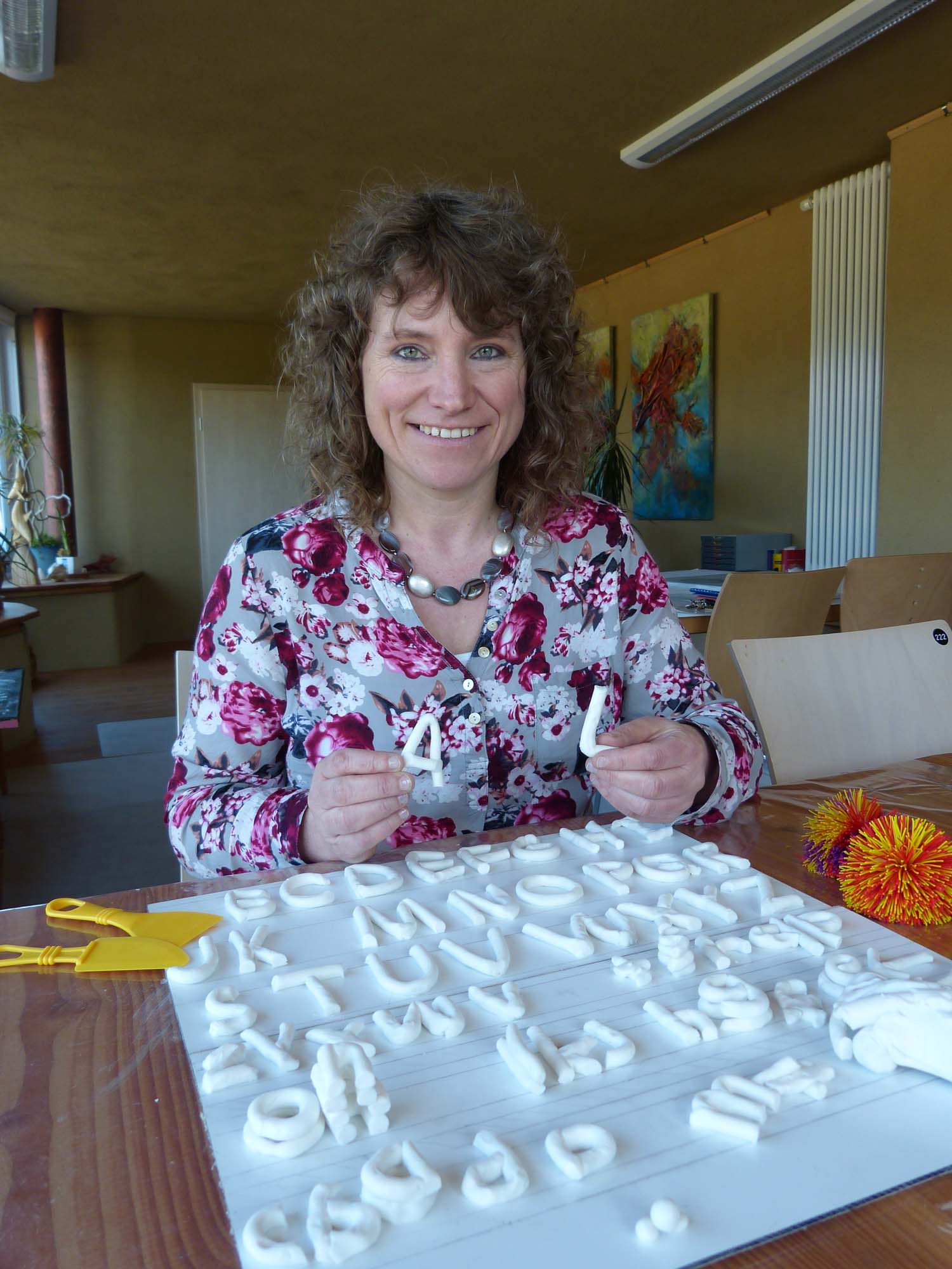 »Legasthenie ist etwas anderes als eine Lese-Rechtschreibschwäche«, betont die Biberacher Künstlerin und Kunsttherapeutin Anette Isabo und nimmt den Buchstaben »p« zur Hand. Den hat ein Kind aus Ton geknetet. Die 46-Jährige dreht den Buchstaben. Je nachdem, in welche Richtung sie das tut, wird aus dem »p« ein »b«, »q« oder »d«. Dass das Gehirn eines Legasthenikers die Buchstaben genauso dreht, erklärt sie, »das sorgt für Verwirrung, für Desorientierung – den Kindern wird teilweise ganz schwindelig, die Buchstaben fangen beim Lesen an, sich zu bewegen.«