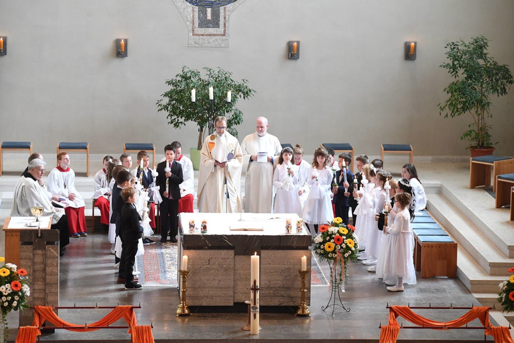 »Von dir zu mir – eine starke Verbindung«: Unter diesem Motto feierten in der Biberacher Pfarrkirche 19 Kinder aus den Gemeinden St. Blasius Biberach und St. Mauritius Prinzbach ihre Erstkommunion.
