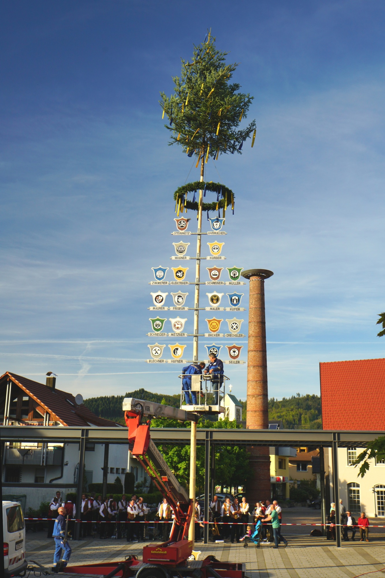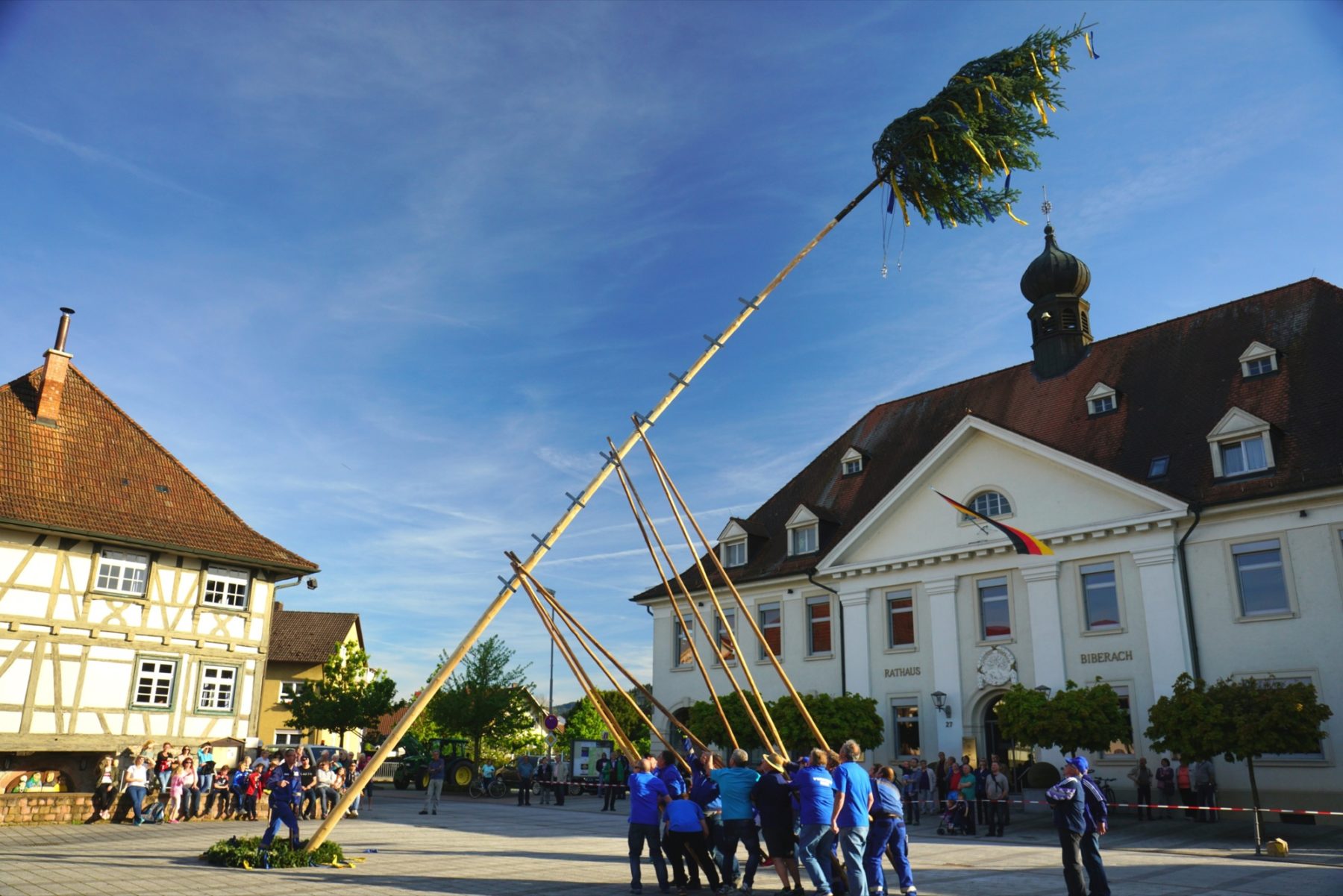 Bei strahlendem Wetter wurde am Vorabend des 1. Mai der Maibaum in der Biberacher Ortsmitte gestellt.