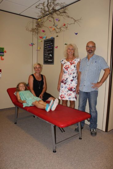Für Jutta und Klaus Gissler (Fa. Özpinar, rechts), war es eine Selbstverständlichkeit, diese sowohl in der Höhe der Kinder anzupassen als auch farblich passend zur Umgebung zu gestalten. Hier werden sich sicherlich alle kranken Kinder gut aufgehoben fühlen. Eine Schülerin durfte gleich einmal Probe liegen.