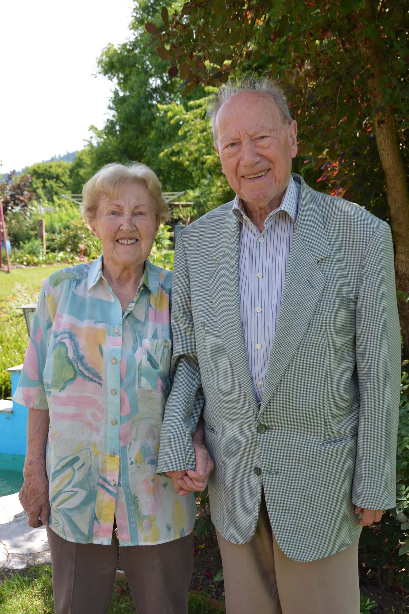 »Wir sind froh, dass wir immer noch beisammen sind und jeden Tag aufstehen können«, freut sich Elisabeth Riehle, die ihren 95. Geburtstag schon vor Wochenfrist feiern konnte. Noch jeden Tag steht sie in der Küche und versorgt wie seit 67 Jahren ihren Mann und sich. Auch sonst wohnen die Eheleute Riehle noch weitgehend selbstständig in ihrem schönen Anwesen am Legerweg. Auch im großen Garten helfen sich beide gegenseitig bei den Pflegearbeiten. Ein ganz regelmäßiger Lebenswandel nennt Elisabeth Riehle als eines der Geheimrezepte, mit denen man ein so gesegnetes Alter bei guter Gesundheit erreichen kann. »Und wir machen aus allem das Beste«, ergänzt sie zufrieden.