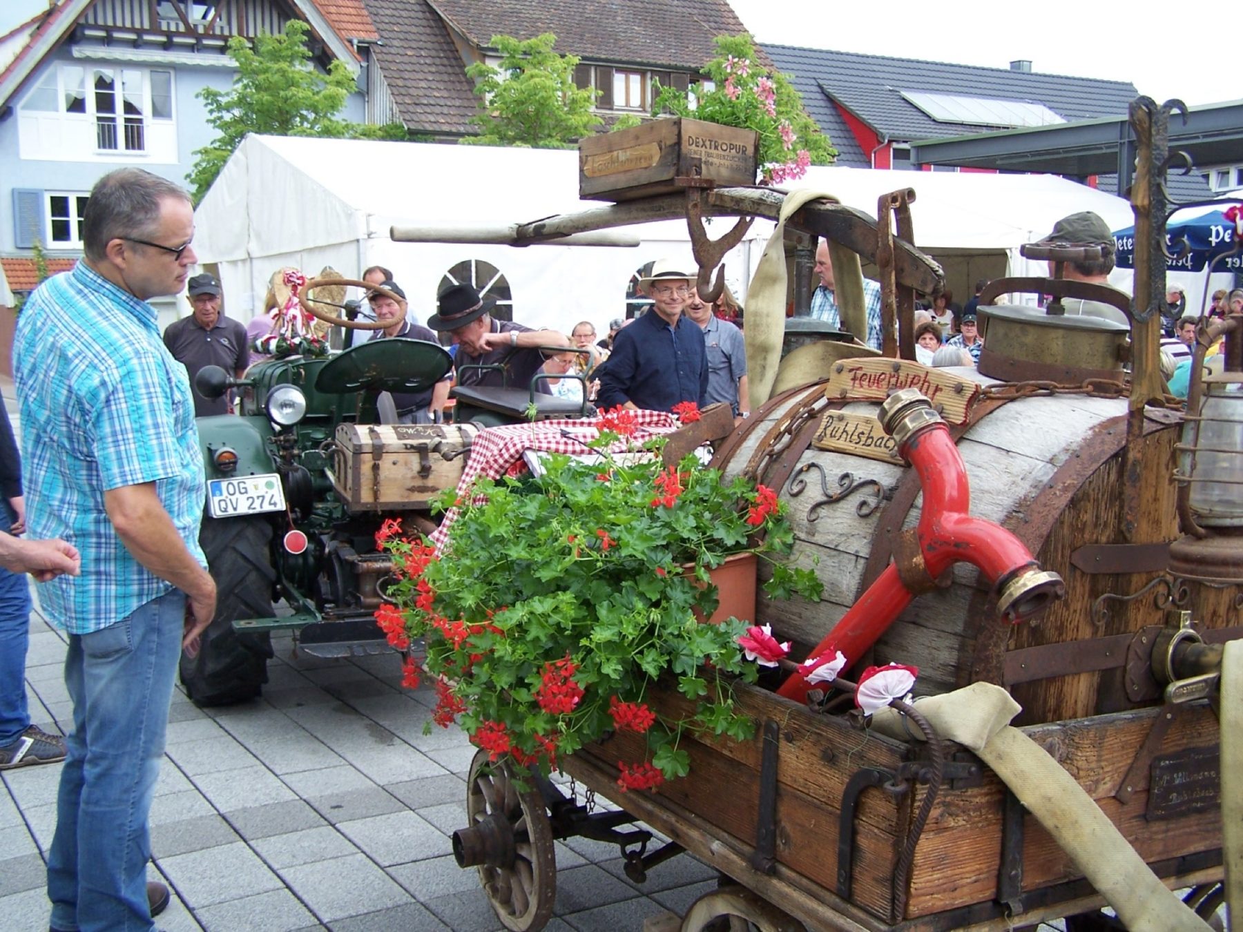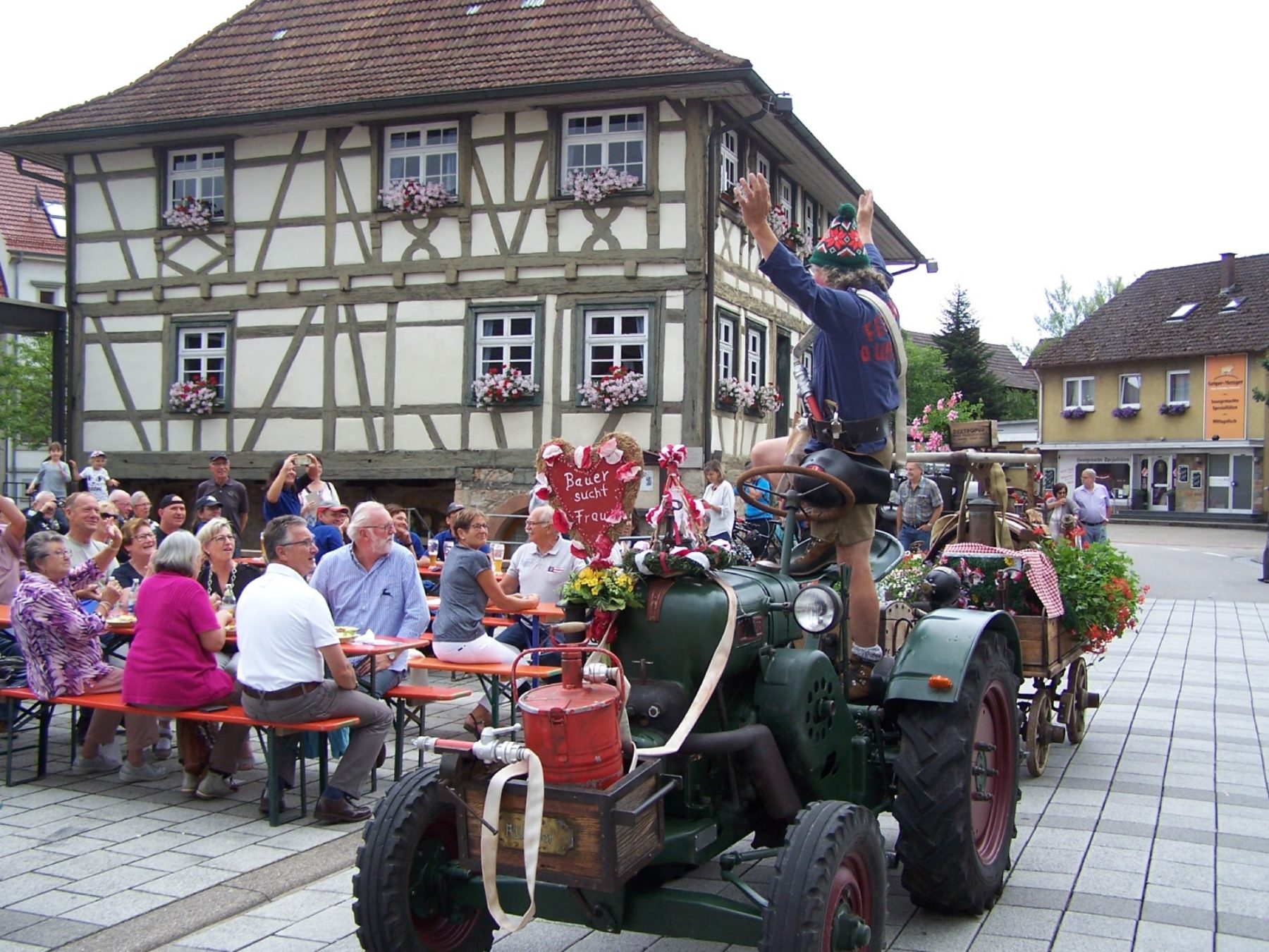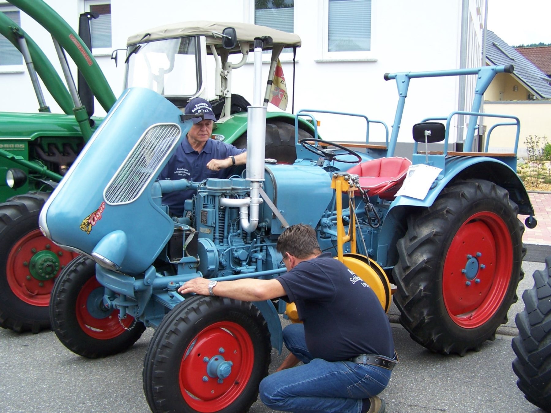 Trotzdem boten die ausgestellten Schlepper und Unimogs ein imposantes Bild. Etliche Festbesucher nutzten gerne die Gelegenheit und bestaunten die rund um Rathaus und Kettererhaus-Museum positionierten historischen Arbeitsmaschinen. Viele schöne und interessante Details waren zu entdecken. Ein beliebtes Event für die Schlepperfans ist auch immer die gemeinsame Ausfahrt. In diesem Jahr führte die kleine Spritztour zum Hof von Organisator und »Winterbur« Wilhelm Schmieder. »Hier wird dann auch gerne das eine oder andere Gläschen Most gekostet« verriet er schmunzelnd. Überhaupt war er den ganzen Tag über kompetenter Ansprechpartner für alle Schlepperfreunde. In so manchem Fachgespräch beeindruckte er mit seinem fundierten Wissen über Geschichte und Technik vieler Fahrzeugtypen.