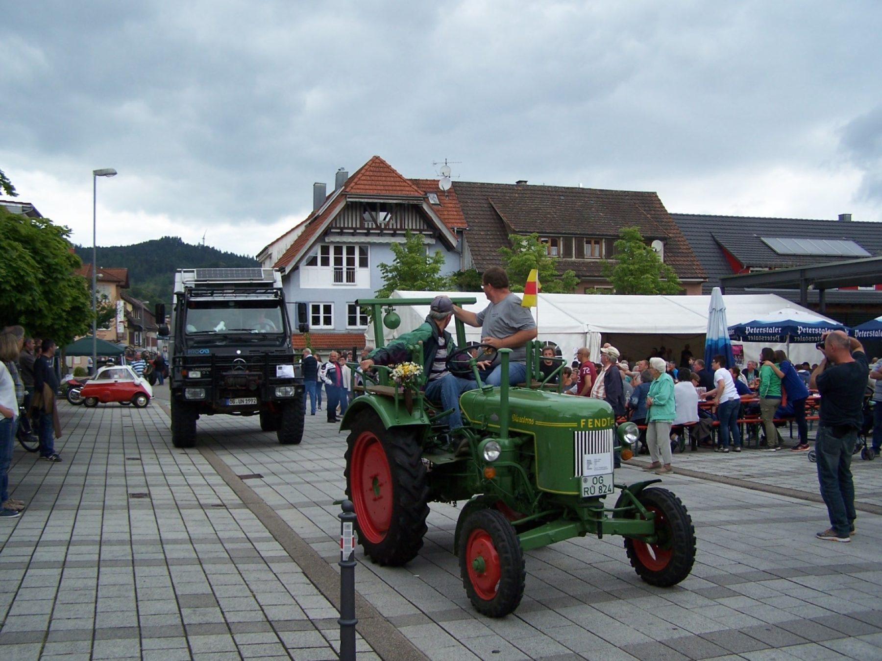 Foto: Daniel SpitzVor mittlerweile 15 Jahren hatte Wilhelm Schmieder die Idee das Sommerfest des MGV mit einem Schlepper- und Unimog-Treff aufzuwerten. Bereits im ersten Jahr fanden sich die Besitzer von 45 historischen Fahrzeugen ein. In den letzten Jahren ist der Biberacher Schleppertreff zu einem beliebten und festen Bestandteil im Jahreskalender der Freunde dieser kultigen Fahrzeuge geworden. Zahlreiche Schlepperfreunde aus dem Ortenaukreis sind schon regelrechte Stammgäste. In diesem Jahr fanden sich rund 70 historische Fahrzeuge ein. Etwas weniger als in anderen Jahren. Dies war wohl einem Regenschauer am frühen Morgen geschuldet, der gerade weiter entfernt wohnende Oldtimerbesitzer von der oft stundenlagen Anfahrt abhielt.