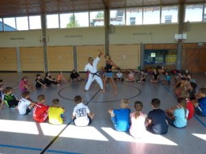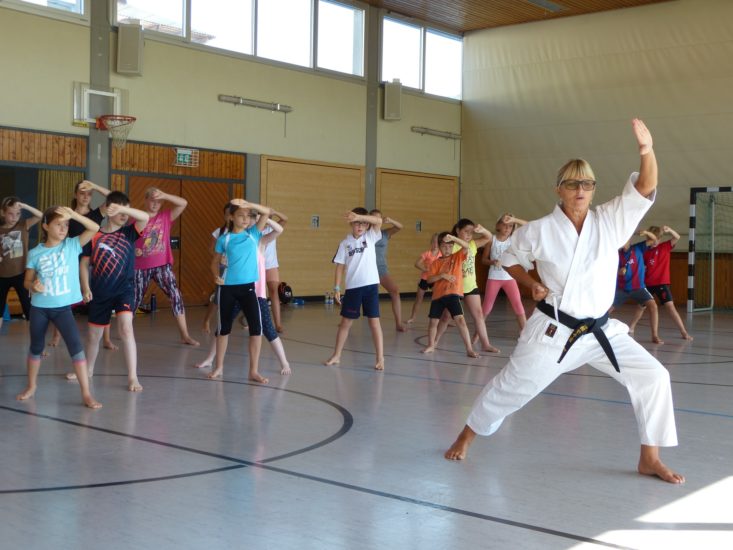 Ferienprogramm als Magnet erwies: 35 Jungen und Mädchen erhielten durch Karate-Trainerin Klaudia Isenmann einen Einblick in die Möglichkeiten der Selbstverteidigung.