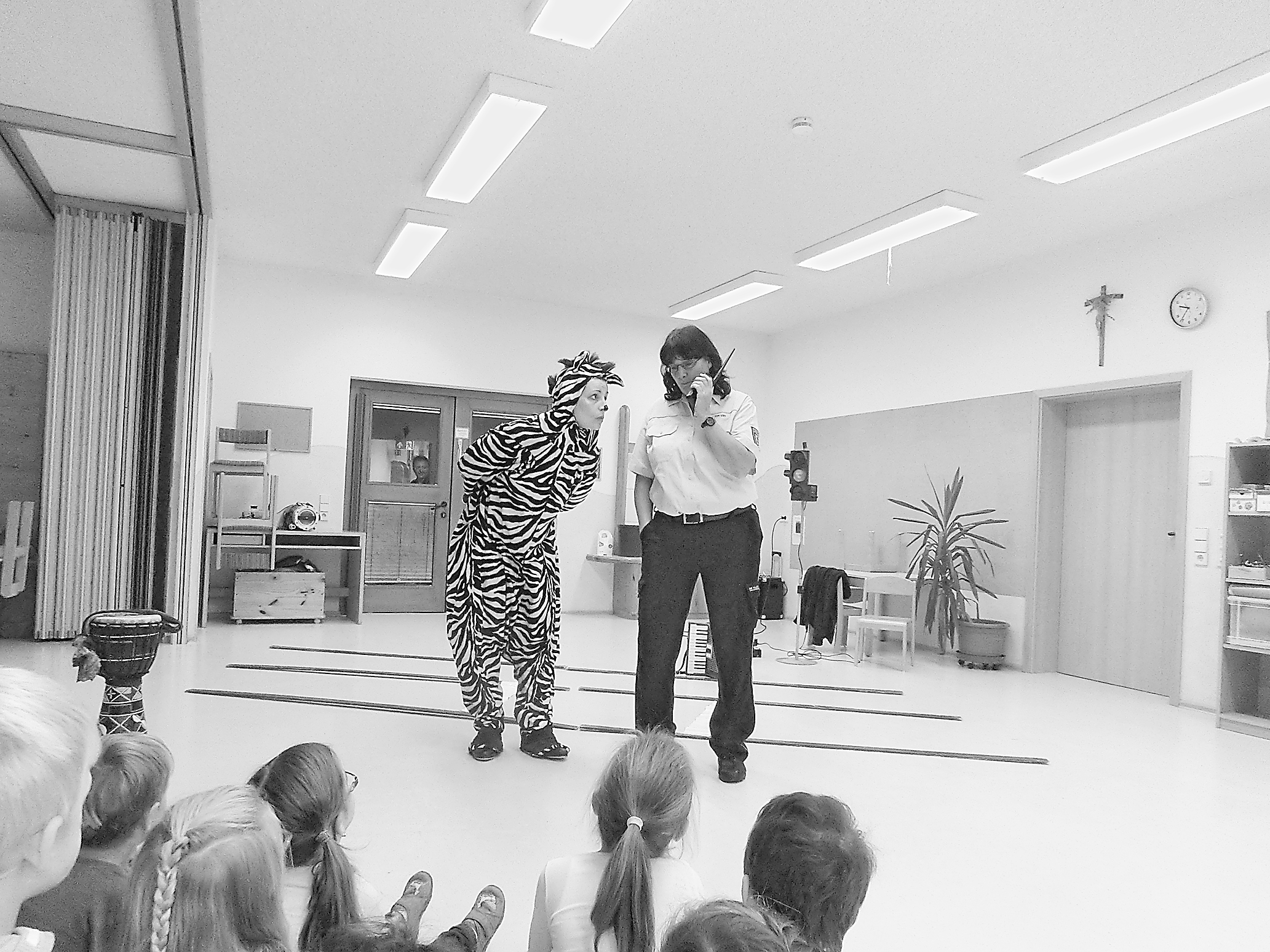 »Vorschulkinder« und »Erstklässler« müssen vor oder ab der Einschulung auf die besonderen Herausforderungen im Straßenverkehr, insbesondere auf dem Schulweg, vorbereitet sein. Das verkehrspädagogische Theaterstück »Das kleine Zebra« will Kindern dieses richtige Verhalten im Straßenverkehr vermitteln. Die Sparkasse Haslach-Zell unterstützte Kindergärten dabei, das »Mitmach-Theater« zu sich zu holen.