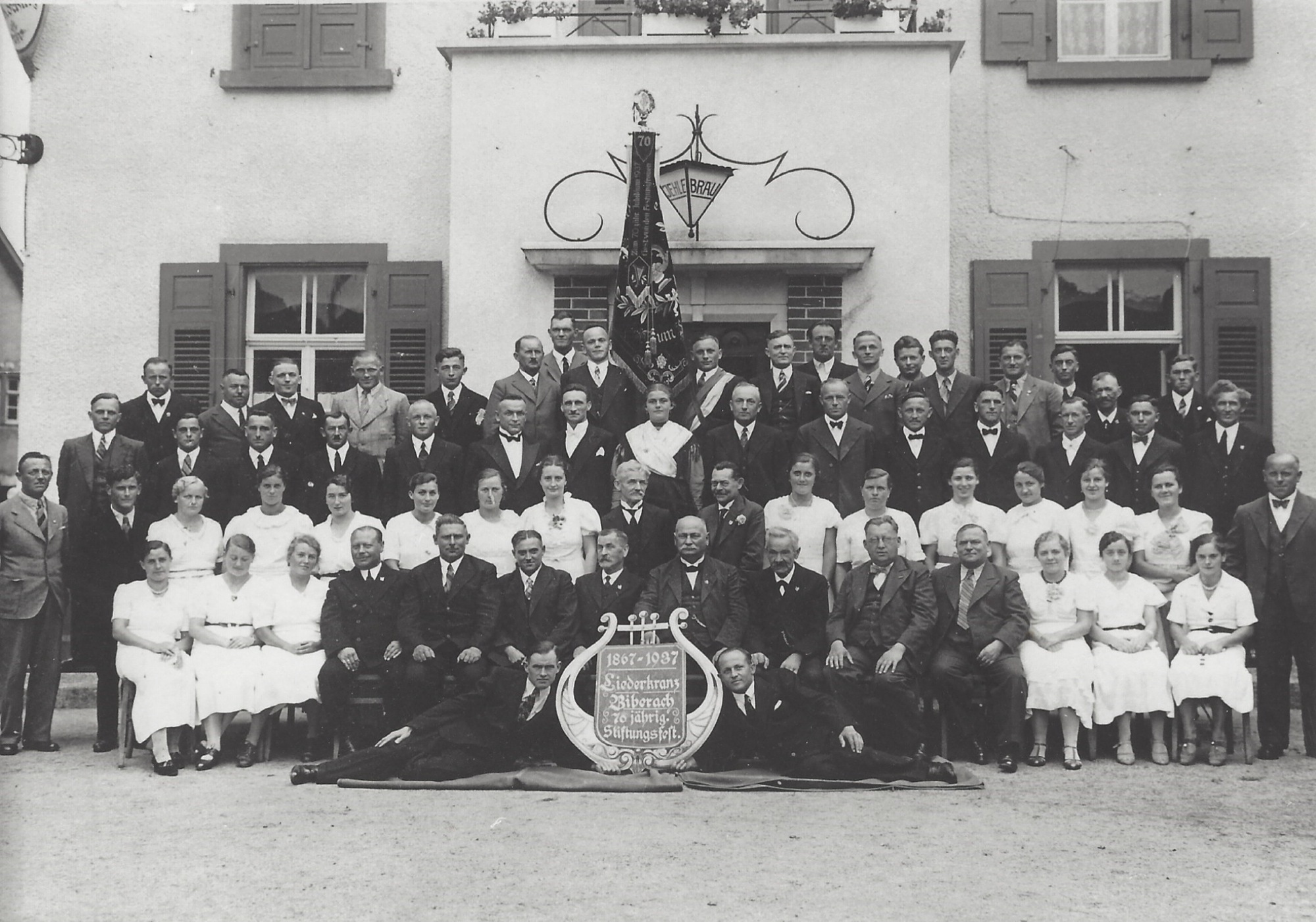 Die Keimzelle für einen Männerchor lag in der Freiwilligen Feuerwehr. Eine Vereinsfahne dokumentiert das Gründungsjahr »Gesang-Verein Biberach 1867«. Auf der Rückseite ist das Emblem der Feuerwehr Biberach abgebildet mit der Jahreszahl 1872. Die Singgruppe war zunächst kein selbstständiger Verein, sondern Teil der Feuerwehr. Erst im Jahr 1897 kam es zur Trennung und zur Neugründung. Seit dieser Zeit trägt der Chor die Bezeichnung »Liederkranz«. 22 Sangesfreunde verpflichteten sich mit ihrer Unterschrift, dem nun selbstständigen Verein beizutreten.
