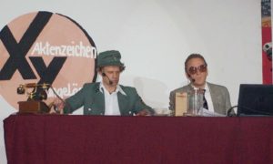 Auch der »Räuber Hotzenplotz« lag auf der Lauer nach fetter Beute und schnappte dabei so einige Anekdoten aus dem Dorfleben auf. So gestattete sich der bekannte Bauhofmitarbeiter »Schmidt-Sepp« beim Edeka Thiem einen Scherz mit seinen »beiden blauen Eiern«, um ebendiese kostenlos abstauben zu können. Während die Nummer auf der Bühne lief, wuselte das Original als »rasende Bedienung« durch die Halle und kommentierte lauthals mit.