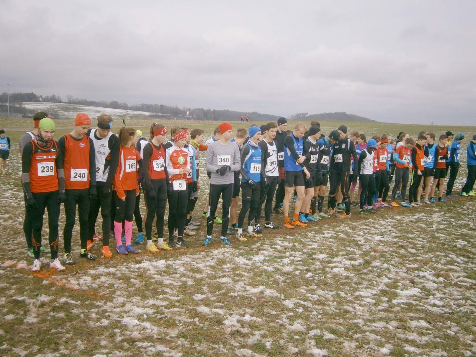 Insgesamt 420 Läufer aus dem Badischen und dem Württembergischen Landesverband waren gemeldet, mit dabei der TV Biberach. Und was ist Crosslauf genau? Crosslauf, kurz Cross, Querfeldein- oder Geländelauf genannt, ist eine Variante des Laufsports, bei der das schnelle Durchlaufen von profiliertem Gelände abseits befestigter Wege im Vordergrund steht. Die Läufe finden in der Regel auf einem Rundkurs von 1.750 bis 2.000 Meter Länge statt. Dabei haben die Teilnehmer überwiegend Wiesengelände unter ihren Laufschuhen – es wird mit Spikes gelaufen – einige Anstiege und Hindernisse machen den Parcours anspruchsvoll. Start und Ziel war an der Schönbrunnenhalle Essingen bei Aalen auf der rauen Ostalb.