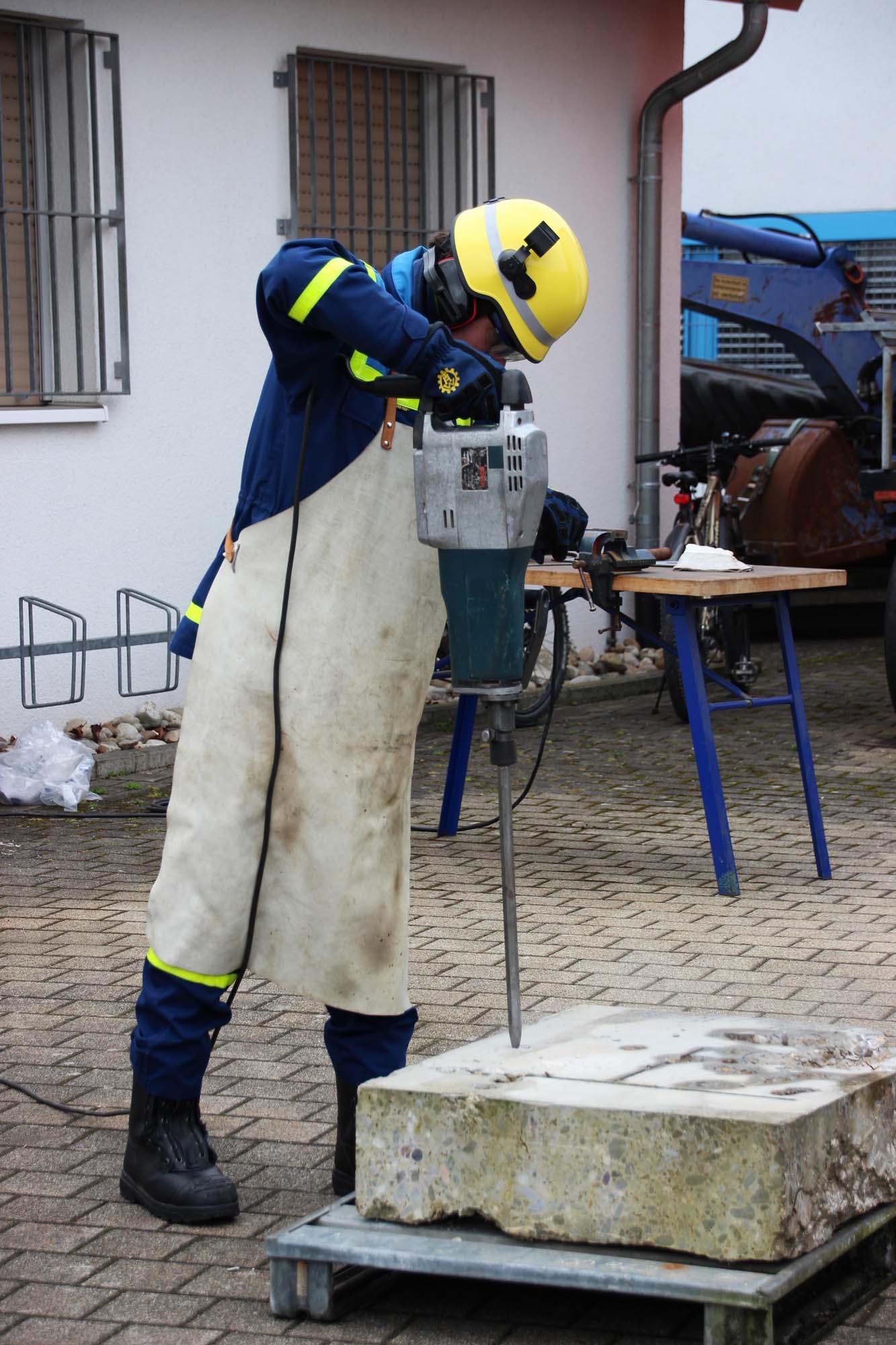 Zum Ende der rund neunmonatigen Ausbildung wird der Leistungsstand in einer theoretischen und praktischen Prüfung abgefragt. Hierbei müssen die Prüflinge verschiedene Situationen aus dem THW-Alltag bewältigen, beispielsweise der Umgang mit Holzbearbeitungswerkzeugen, das fachgerechte Bewegen von Lasten oder das Füllen und Verlegen von Sandsäcken.