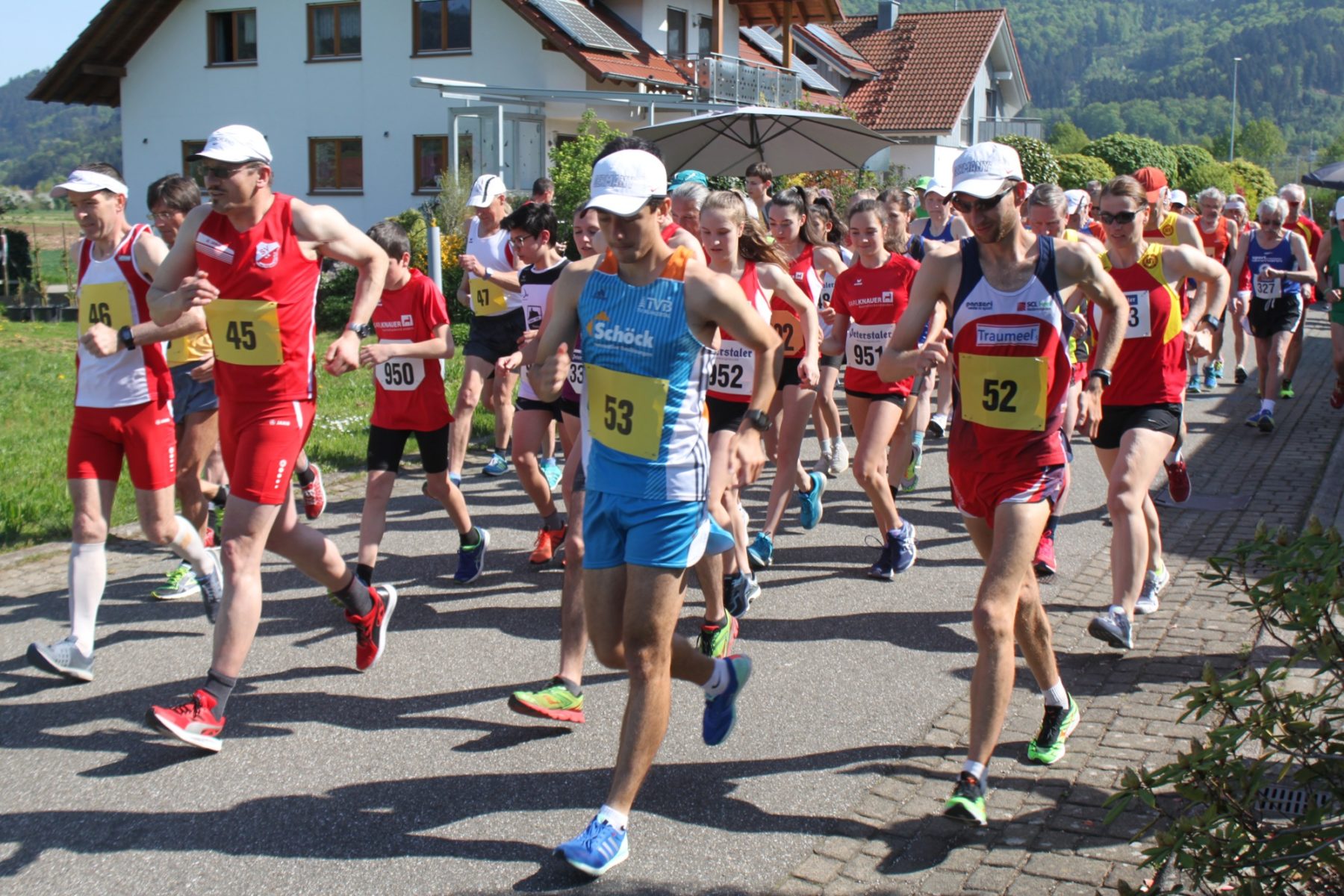 Ab 18 Uhr ging dann das große Starterfeld von 200 Läufern für den 10-km-Hauptlauf sowie den 5-km-Lauf auf die Strecke. Überraschend gute Resonanz war zuvor auch bei den Kinder- und Jugend-Läufen verzeichnet worden, und die Veranstaltung verlief insgesamt reibungslos. Doch mussten einige Sportler aufgrund der überraschend sommerlichen Hitze den Wettkampf in diesem Jahr vorzeitig abbrechen.
