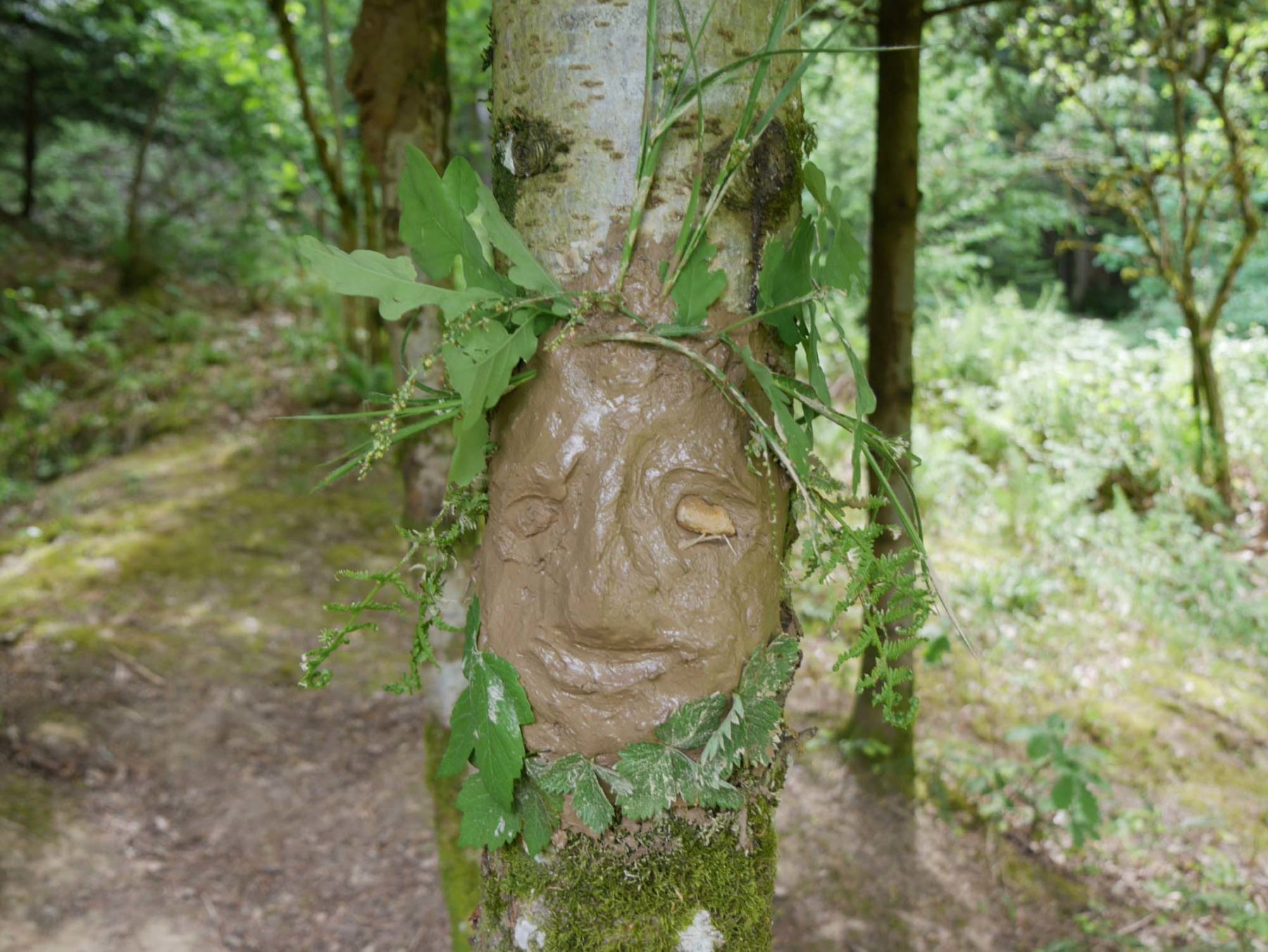 Immer wieder gestaltete der eine oder andere Festbesucher unter Anleitung von Anette Isabo ein Gesicht aus Lehm, manche waren inspiriert und fertigten ganze Figuren, welche mit den verschiedensten Naturmaterialien ausgeschmückt wurden, andere versuchten Gold aus dem kleinen Luisenbach zu waschen.