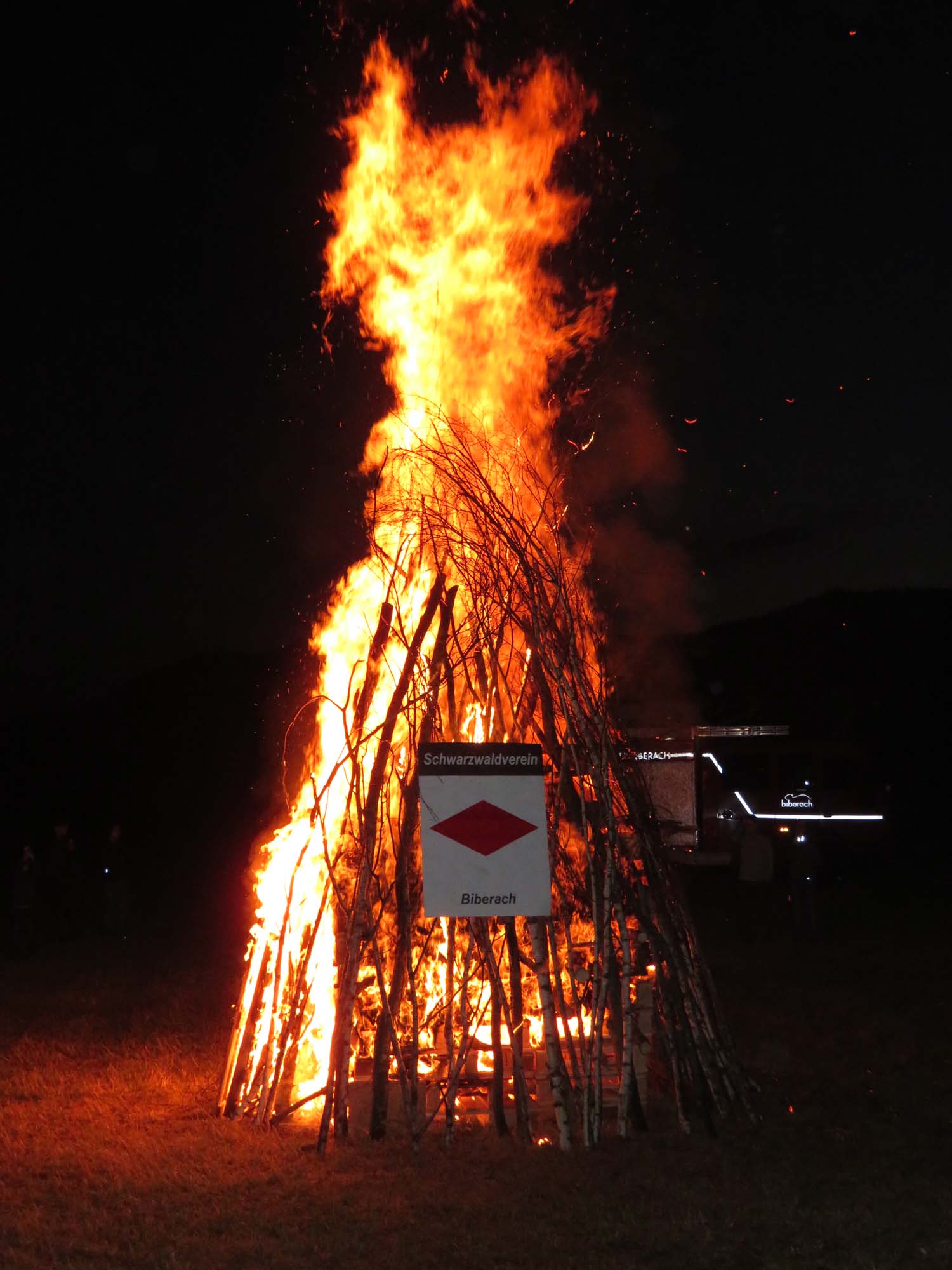 Meterhoch schlugen die Flammen in den klaren und Sternen übersäten Nachthimmel. Der Schwarzwaldverein