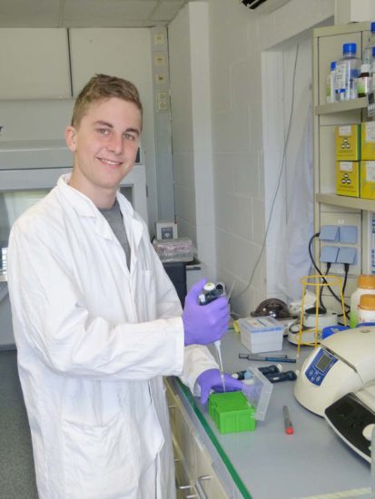 Zwischen 50 und 60 Unternehmen hat er angerufen oder angeschrieben, um Sponsoren zu finden. Denn vom Brutschrank übers Mikroskop bis hin zur Zentrifuge – teils in Form ausgemusterter Ausstellungstücke – benötigte Tobias Stadelmann für sein Forschungsprojekt allerlei. Dieses musste er daher über einige Monate hinweg zunächst einmal planen. Hinzu kamen die Verbrauchsmaterialien. Alleine an die fünfzehntausend Pipettenspitzen hat er bislang verbraucht – und extern eingeworben.