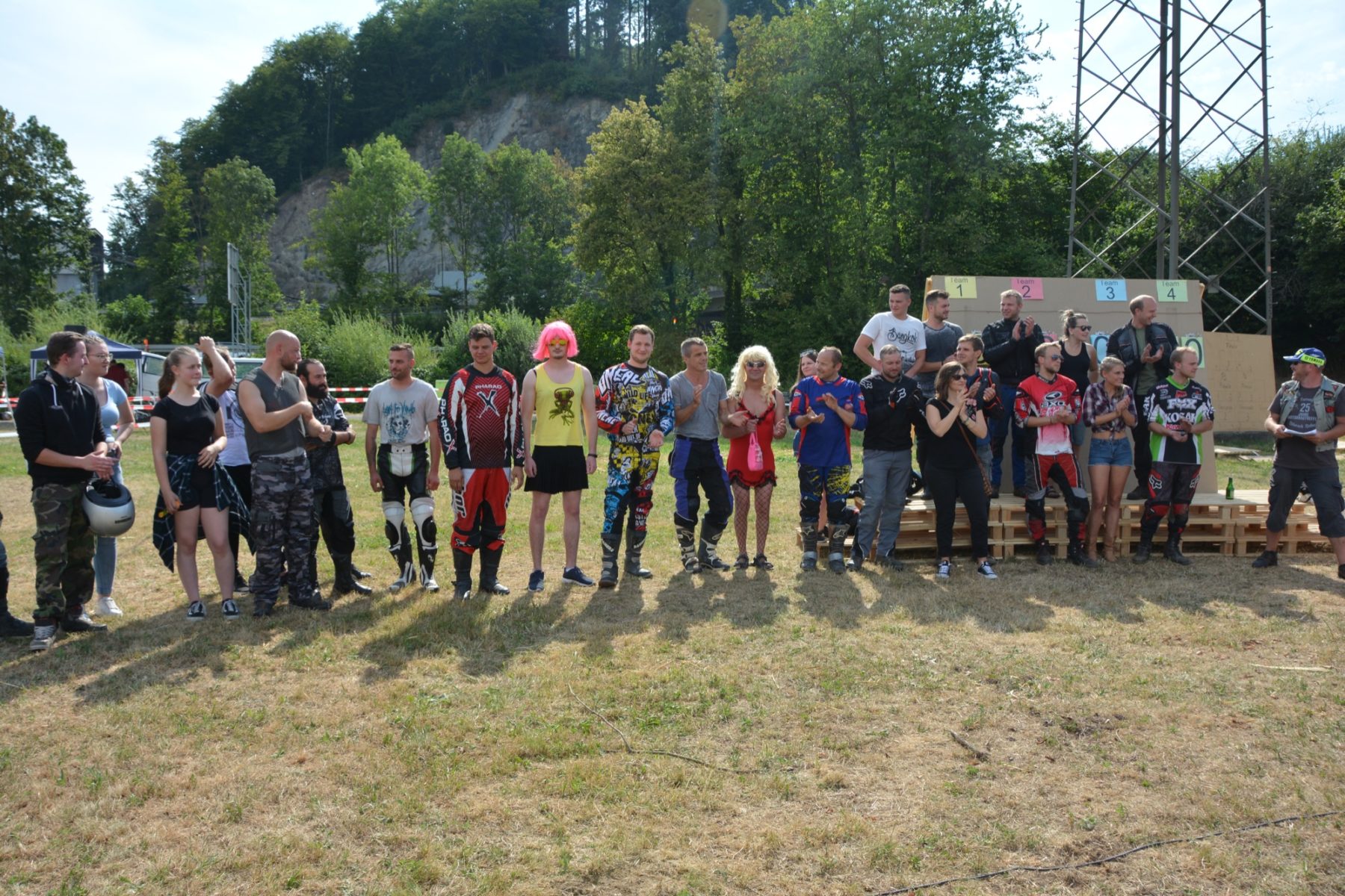 Der Spaß am Motorradfahren kann auch beim »Ghost-Cup« am Samstagnachmittag ausgelebt werden. Neun Teams samt Boxenluder nahmen an dem Rennen mit den Mini-Bikes teil, bei denen hart um die Platzierungen gekämpft wurde. Am Ende stand das Team »One Change« auf Platz 1. Dahinter folgten die »Schwarzwald-Mafia« und auf Platz 3 die »Pussy-Bikers«.