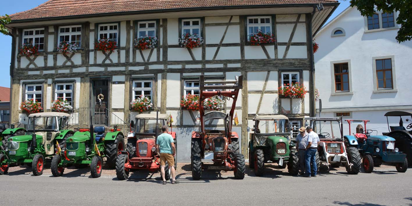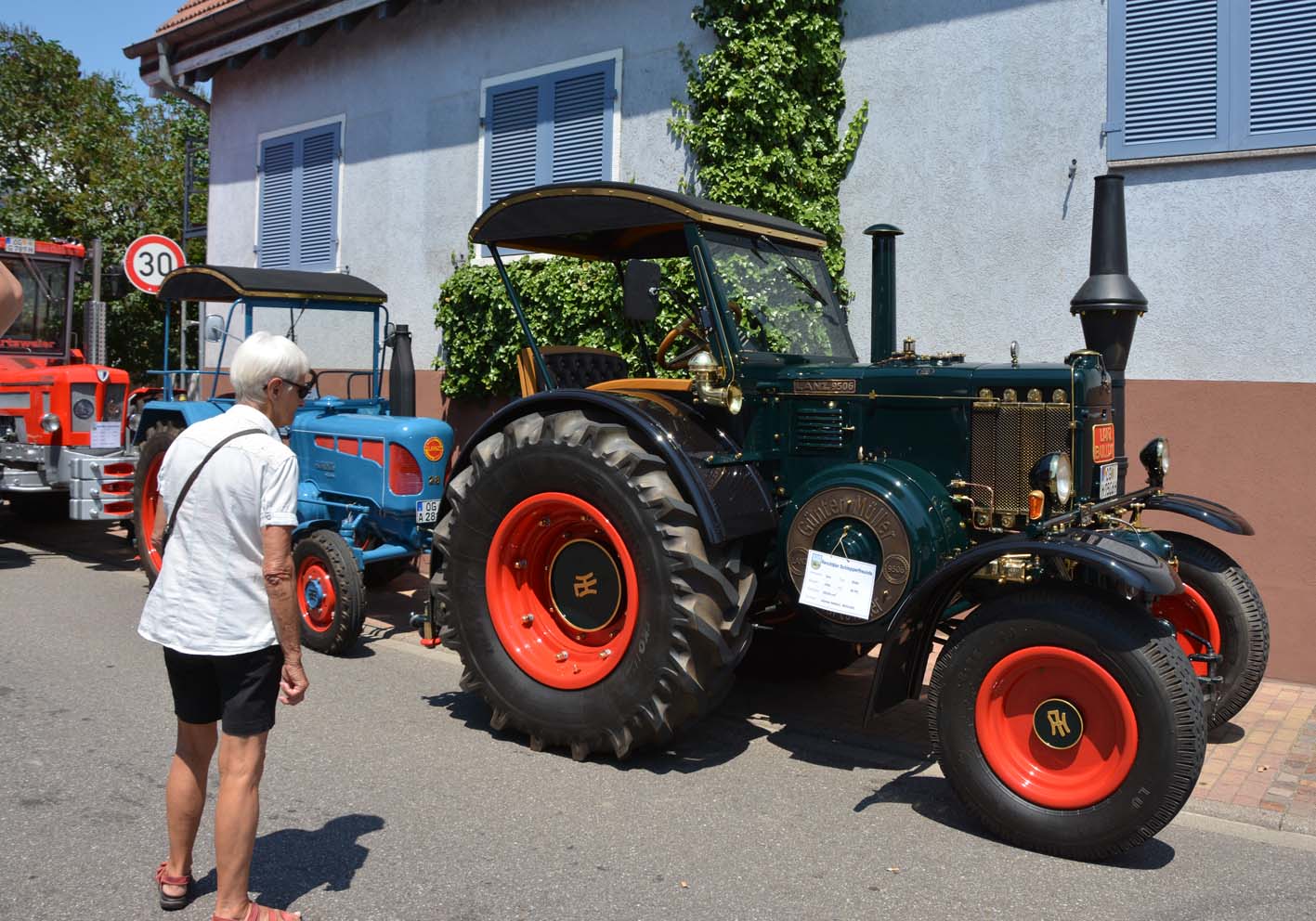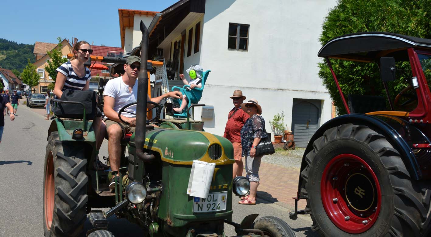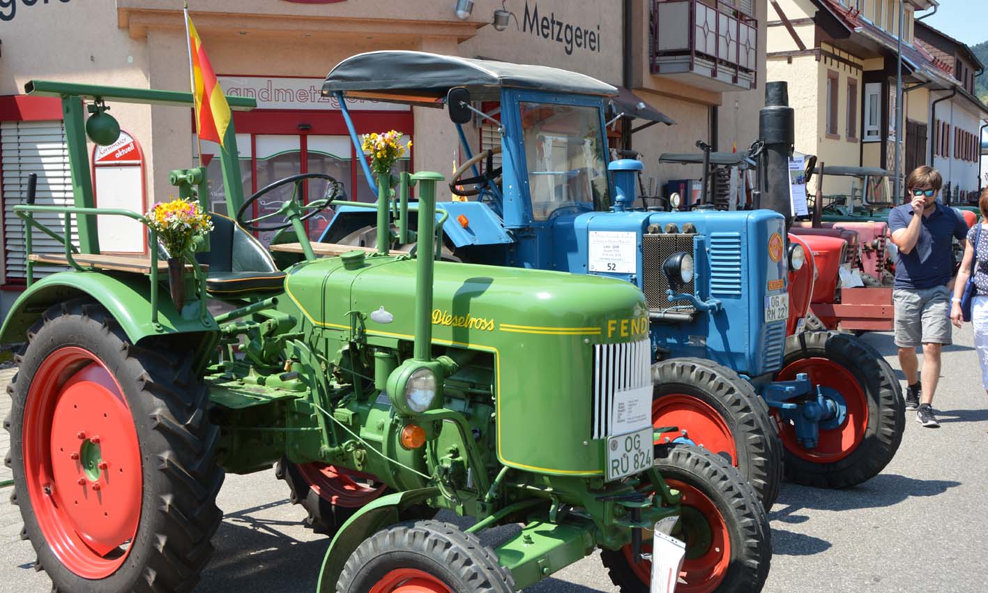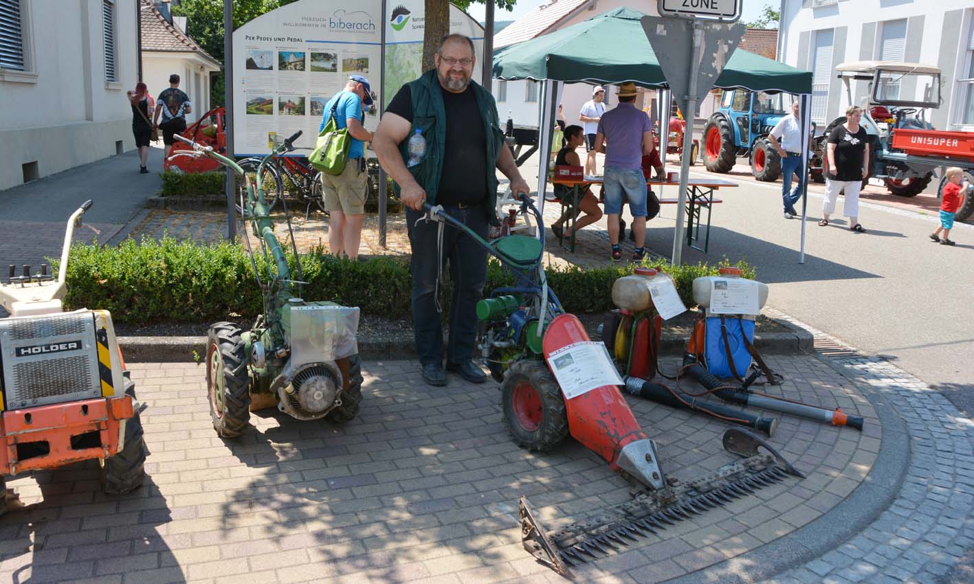 Auch Winterbur Wilhelm Schmieder von den »Unimog-Freunden Biberach«, die seit nunmehr 16 Jahren das Highlight des Sommerfestes organisieren, zeigte sich sehr zufrieden. Mehr als 100 Fahrzeuge hatten rund um Rathaus und Ketterer-Haus-Museum Aufstellung genommen und boten ein imposantes Bild. Das waren deutlich mehr als im Vorjahr, als einige Schlepperfreunde durch einen kurzen Regenschauer am Morgen von der Anfahrt abgehalten wurden. »Das Sommerfest beim Zwiebelturm ist bei den Schlepperfreunden sehr beliebt« erzählte er schmunzelnd mit einem Blick auf das Rathaus-Türmchen. So verwundert es auch nicht, dass wieder viele Schlepper- und Unimog-Besitzer aus befreundeten Vereinen mit ihren Fahrzeugen die teilweise lange Anfahrt auf sich genommen haben. Die weiteste Anreise hatten dabei sicherlich die Unimog-Freunde aus Gütenbach bei Furtwangen, die eine Anreise von 50 km stemmen mussten. Weitere Gruppen kamen aus Bottenau und Eckartsweier. Die Renchtäler Schlepperfreunde waren mit fünf Fahrzeugen vertreten, darunter ein prachtvoll restaurierter Lanz Bulldog aus dem Jahr 1950. »Über ein Jahr habe ich mit einem Bekannten nahezu jeden Abend an dem Schlepper gearbeitet« erläuterte der stolze Besitzer Günter Müller »Jedes Teil wurde ausgebaut, restauriert und lackiert«.