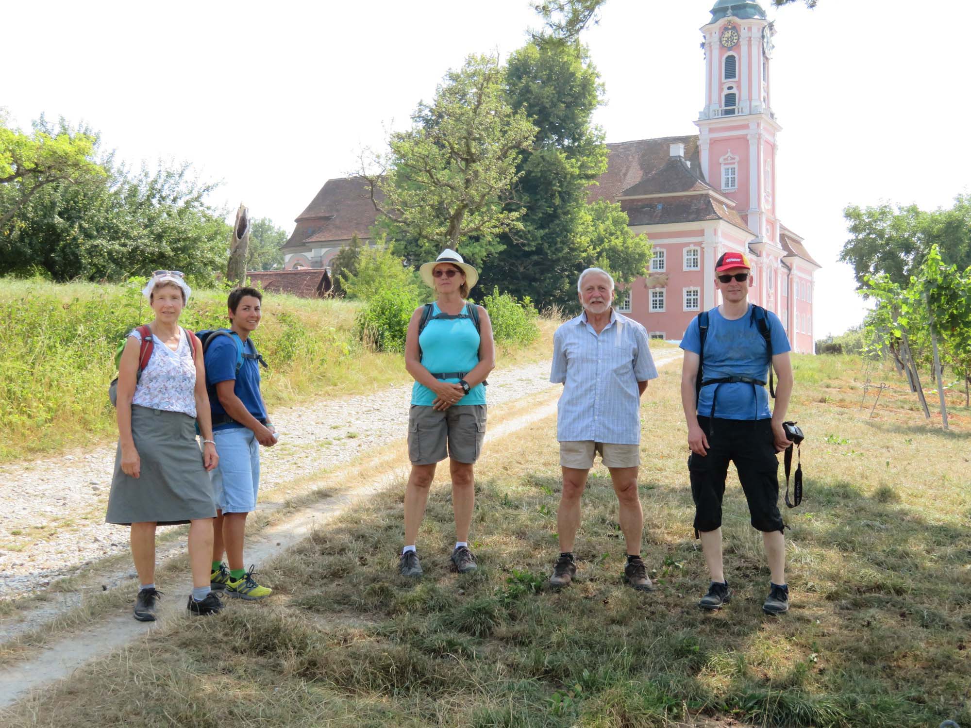 Nach einem Frühstück in einer Bäckerei begann die Wanderung auf dem Bodensee-Rundweg in Richtung Überlingen. Die Wanderroute ging entlang der Seefelder Aach – Seefelden – Obermaurach – Klosterkirche Birnau. Die Wallfahrtskirche St. Maria gilt als die schönste Barockkirche am Bodensee. Weiter über Nussdorf – fast immer entlang des Überlinger Sees zum Teil durch Naturschutzgebiete, vorbei an vielen Campingplätzen nach Überlingen. In Überlingen war dann Zeit für einen Bummel durch die Altstadt und das Flanieren auf der Uferpromenade oder einfach am See die Seele baumeln lassen.