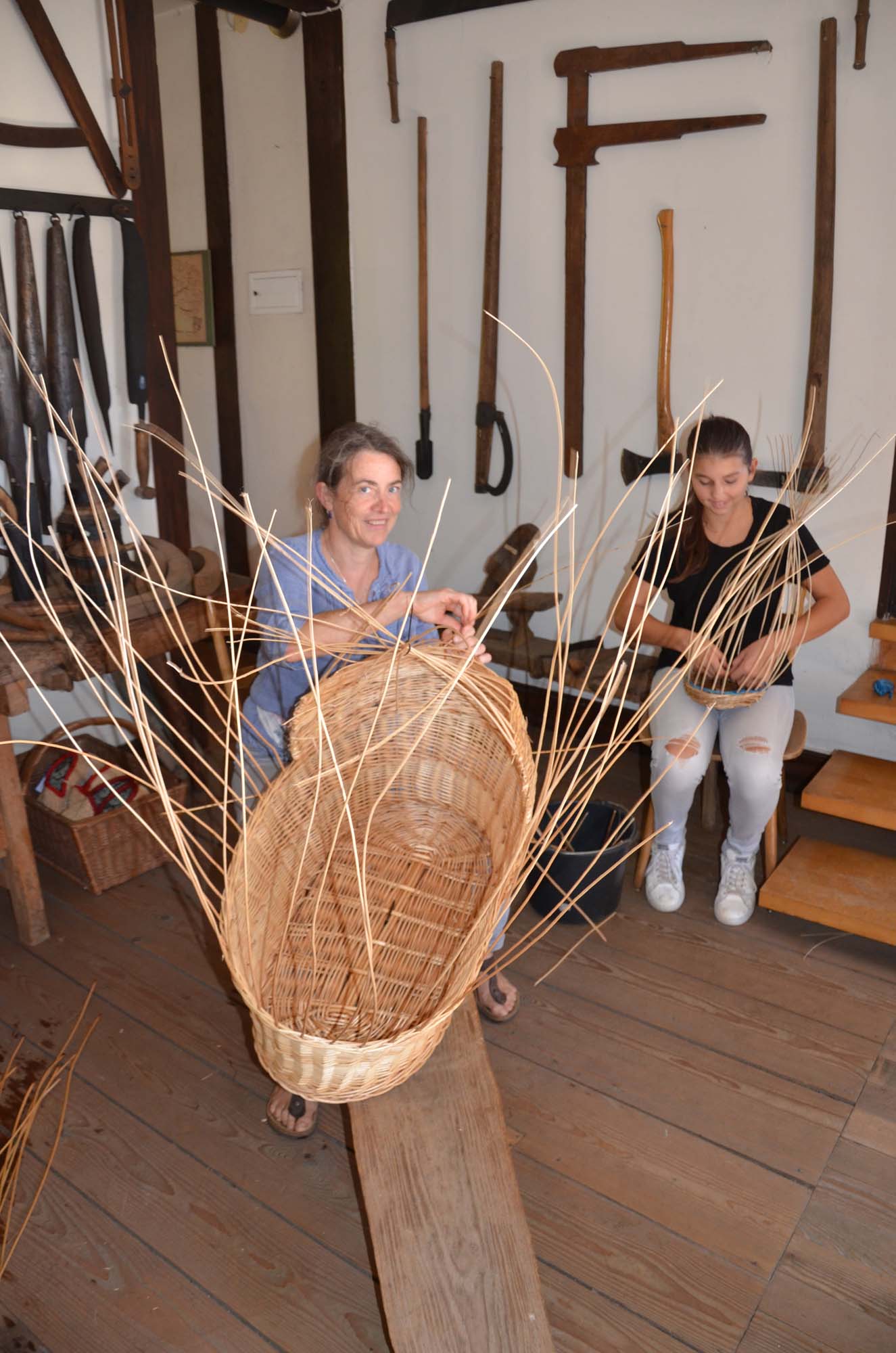 Gleich mehrere Handwerker ließen sich beim Museumstag über die Schultern schauen und zeigten ihre alten Handwerkskünste. Weiden aus dem eigenen Garten verarbeitet Susanne Büchler zu praktischen Körben. Beim Museumstag hat sie eine schöne Kinderwiege gefertigt. Gelernt habe sie ihr Handwerk noch bei Ludwig Huber, dem letzten Korbmacher von Biberach, erzählte Susanne Büchler.
