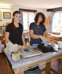 Gleich in der Stube nebenan hatte Gwendolyn Hättig ihre Filzwerkstatt aufgebaut. Dort entstanden unter den Augen der Besucher wärmende Filzpantoffeln. Noch produziere sie auf Vorrat, aber bald komme ja wieder die kältere Jahreszeit, zeigte sich die geübte Handwerkerin sicher. Hier wie dort, beim Weidenflechten und beim Filzen, war auch Ronja Hättig im Einsatz.
