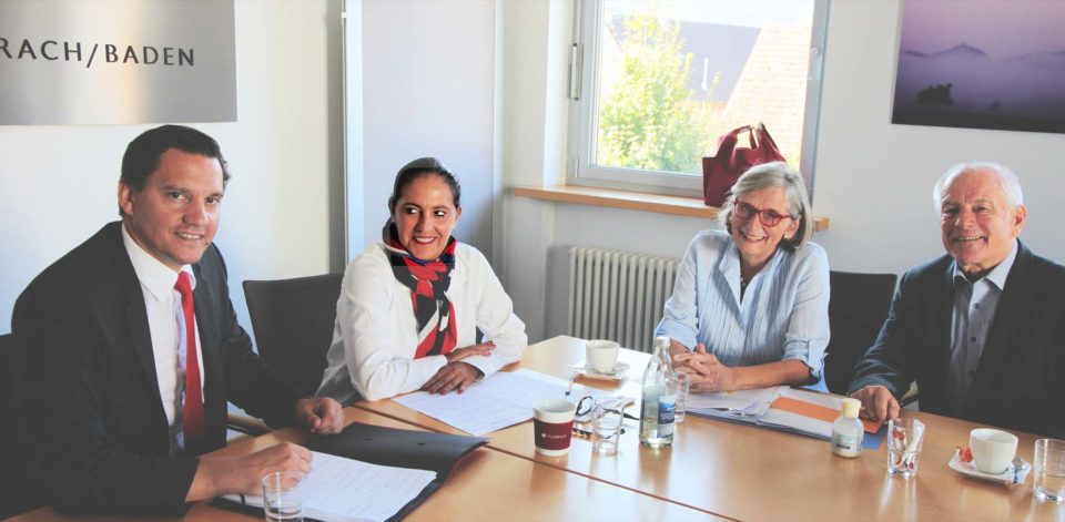 Gesprächsrunde im Biberacher Rathaus (von links): SPD-Bundestagsabgeordneter Johannes Fechner, Bürgermeisterin Daniela Paletta, Ruth Champion und Gottfried Moser vom Verein Hilfe von Haus zu Haus Biberach. Foto: Gemeinde